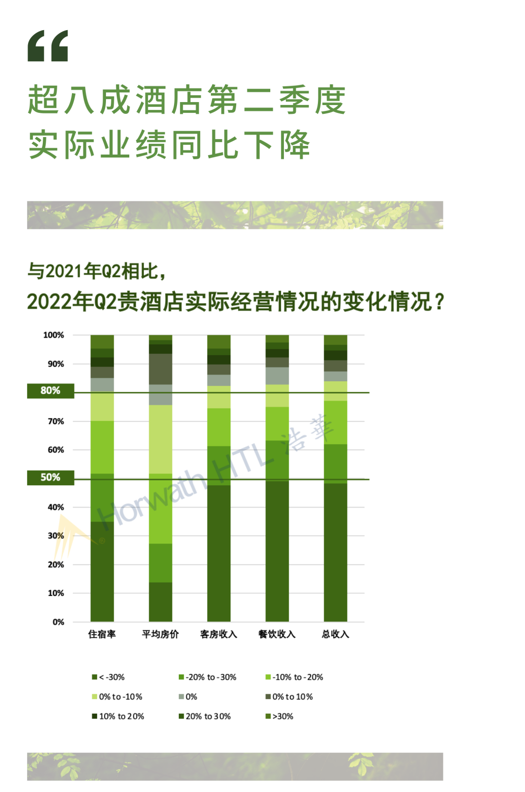 《2022年第三季度中国酒店市场景气调查报告》显示,超八成酒店第二季度的实际运营情况不敌去年同期水平,近五成的受访者表示其所在酒店的客房收入、餐饮收入和总收入较去年同期的业绩降幅逾30%。