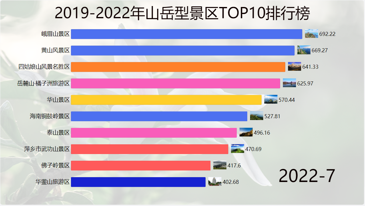 8月4日,迈点研究院独家发布《山岳型景区品牌TOP10》视频榜单,其中峨眉山景区、黄山风景区、四姑娘山风景名胜区位列三甲。