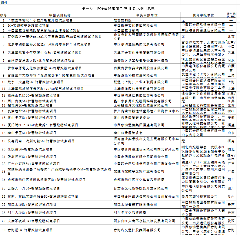 文旅部公布第一批“5G+智慧旅游”应用试点项目