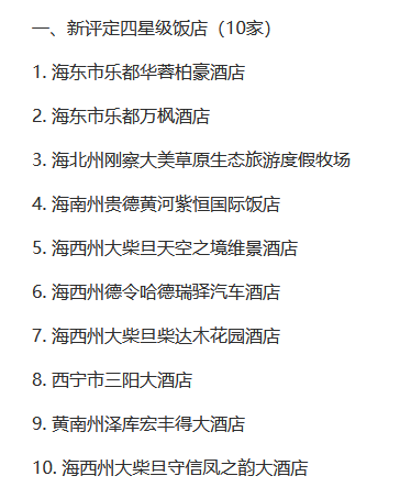 青海省新评定10家四星级饭店、12家丙级旅游民宿