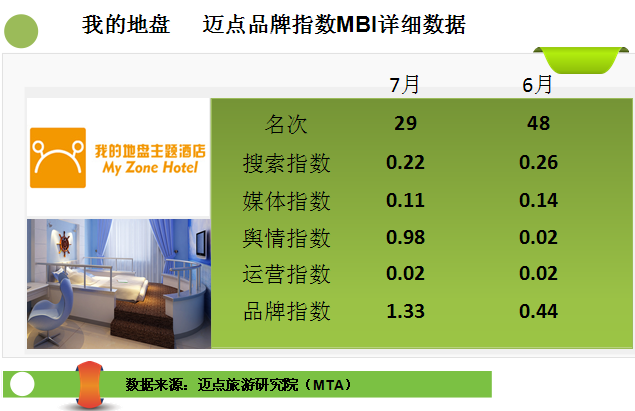迈点品牌指数MBI(酒店品牌部分)是由迈点网独家发布,用以反映一段时期内酒店品牌在互联网和移动互联网的影响力的指标数据,可为企业及行业相关人士分析品牌传播及营销管理提供参考。迈点品牌指数MBI主要从搜索指数、舆情指数、运营指数、媒体指数4个维度分析品牌在互联网和移动互联网的在影响力。这是迈点网基于迈点旅游研究院自主开发的“迈点品牌指数监测系统” Meadin Brand Index Monitoring System(MBIMS)提供的一项免费数据分析服务。