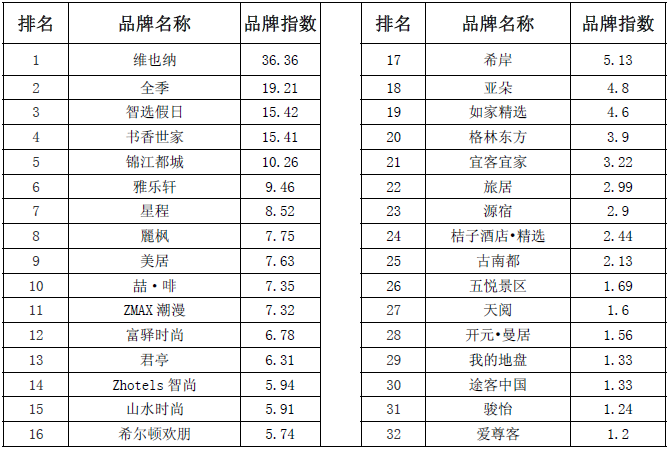 1.有限服务中档酒店品牌风云榜TOP20