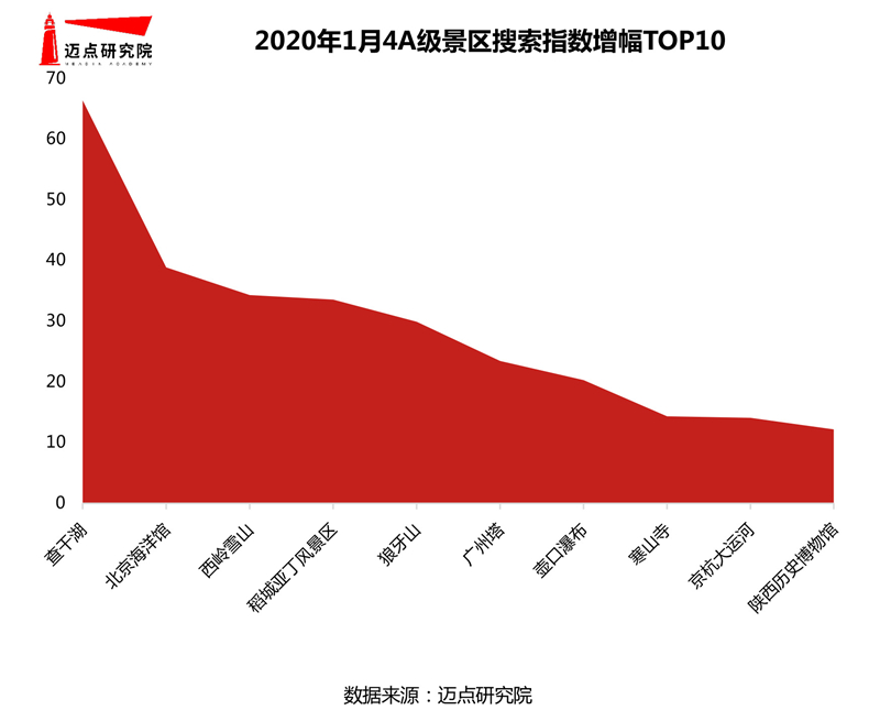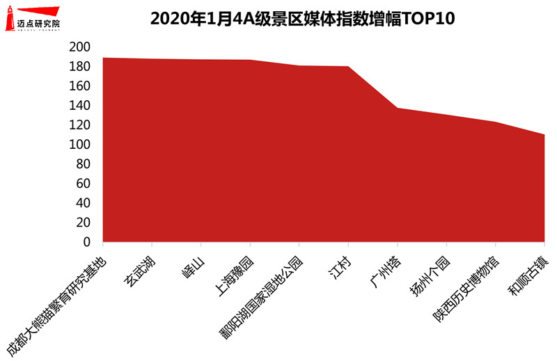 本月迈点研究院最新独家发布的“2020年1月4A级景区品牌500强榜单”中,峄山、上海豫园、成都大熊猫繁育研究基地、江村、壶口瀑布、玄武湖作为新晋景区入围前十;在空间分布上,华北东北热度下降,西南西北增幅明显,浙江江苏稳居前列,重庆宁夏表现突出;查干湖、金海湾红树林、成都大熊猫繁育研究基地级南街村在各细分维度表现最为优异。