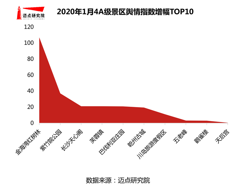 据了解,疫情当下,作为发源地的华中地区旅游景区首当其冲,为严防疫情,资源富集的东北华北等地旅游景区均陆续发布闭园公告,春节旅游黄金周国内各重点景区一片萧条。区域范围内,部分景点表现仍较为突出,西南四川绵阳佛爷洞景区在本月初备受游客追捧,相关推文使该景区热度倍增;1月16日银河航天首发星在西北甘肃酒泉卫星发射中心成功发射,促使其媒体指数大幅上涨,景区排名直接提升913名成功入围榜单。迈点研究院认为,疫情引发的巨大冲击将倒逼旅游行业重新“洗牌”,面对危机,从业者应将“隔离期”视为“闭关期”,通过完善景区提升规划、谋划实施景区业态,实现现有旅游产品的全面升级,为业务恢复和提质发展推波助力。
