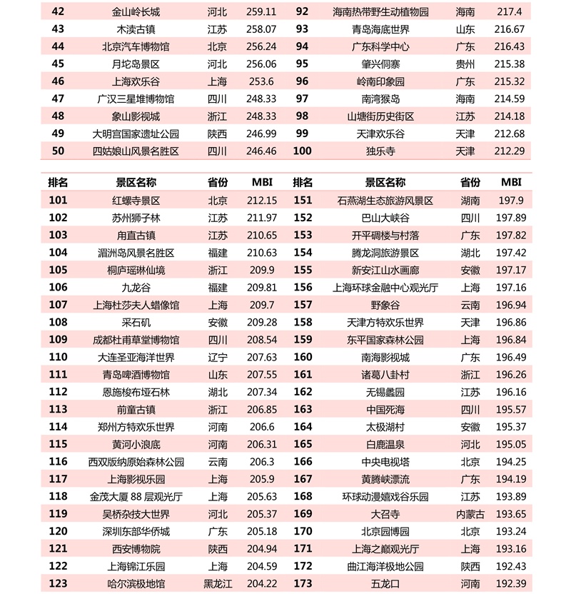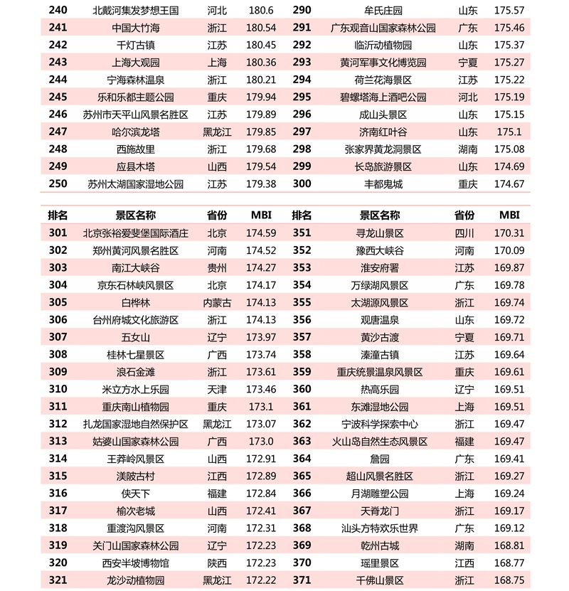 “2020年1月4A级景区品牌500强榜单”数据来源于迈点品牌指数MBI,根据1月迈点品牌指数MBI的2773个4A景区数据汇总统计而成。具体说明如下: