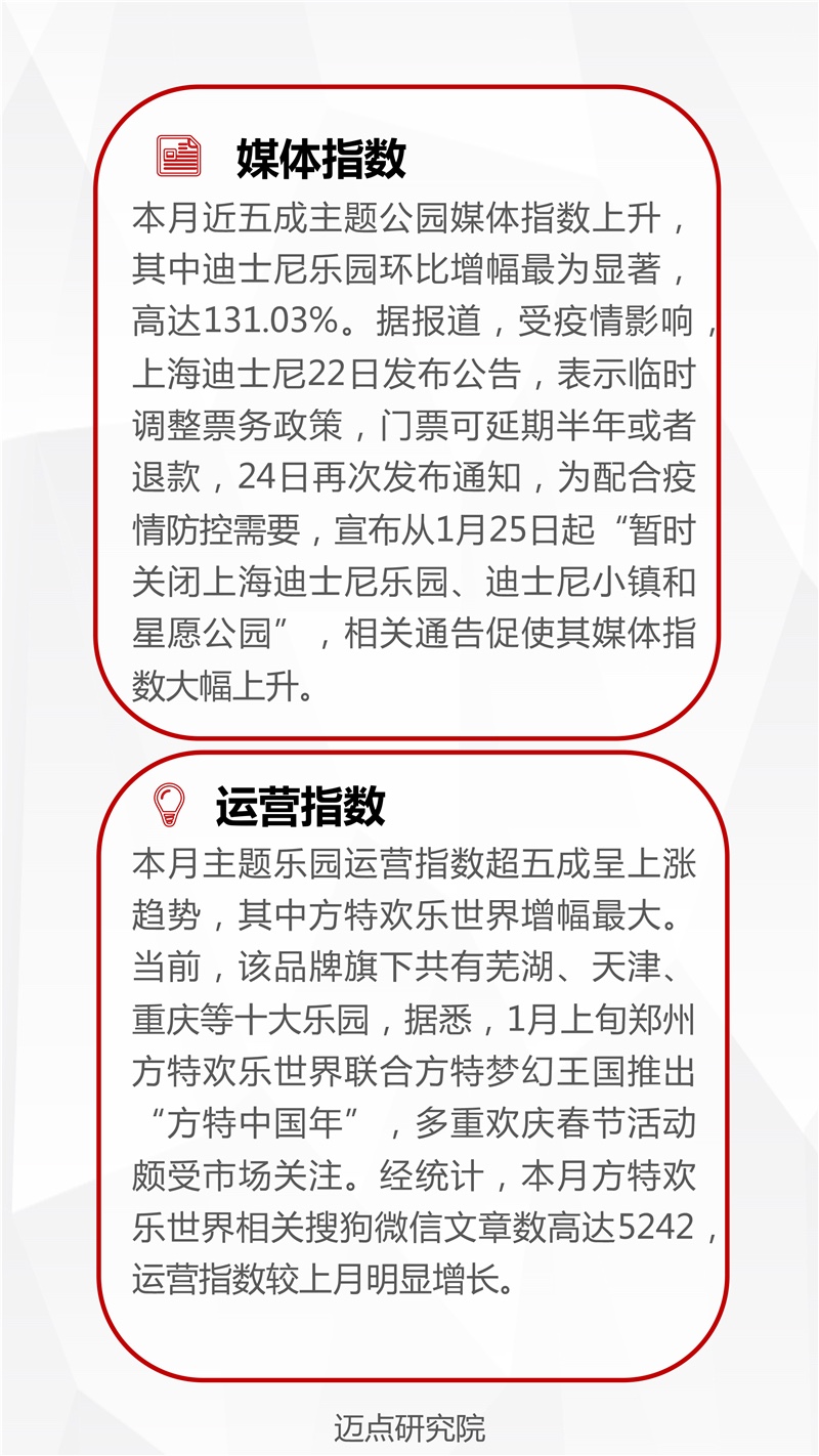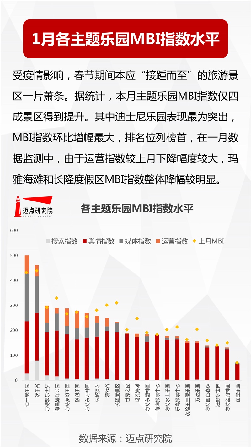 2020年1月主题乐园品牌发展报告 迈点研究院 · 张迪 · 2020-02-26 08:00:38 分享到 打开微信“扫一扫”,打开网页后点击屏幕右上角分享按钮。 受疫情影响,春节期间本应“接踵而至”的旅游景区一片萧条。据统计,本月主题乐园MBI指数仅四成景区得到提升。 主题乐园 研究 行业分析 0