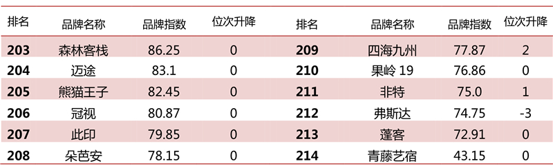 3.监测范围:国际高端酒店、国内高端酒店、全服务中档酒店、有限服务中档酒店、经济型酒店、平价酒店、精品酒店、客栈民宿等八大类目的856家市场主流旅游住宿业品牌。