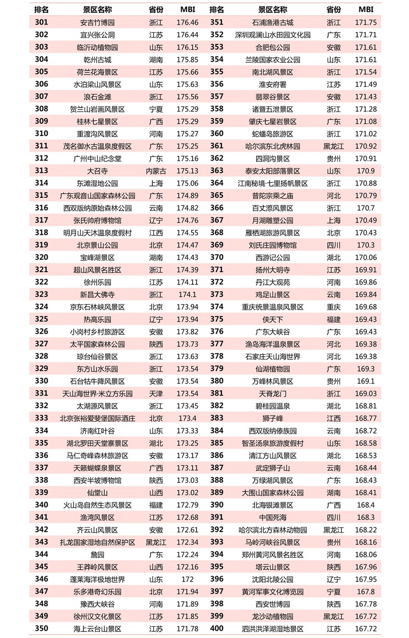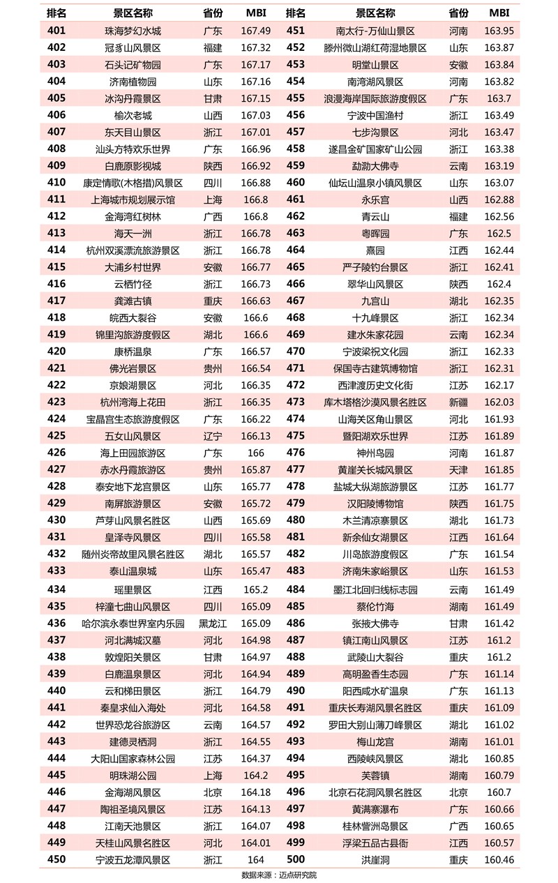 “2020年3月4A级景区品牌500强榜单”数据来源于迈点品牌指数MBI,根据3月迈点品牌指数MBI的2764个4A景区数据汇总统计而成。具体说明如下: