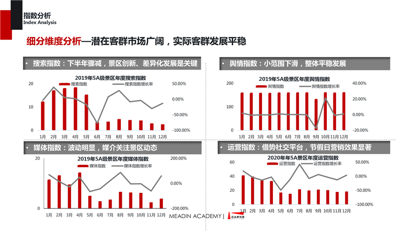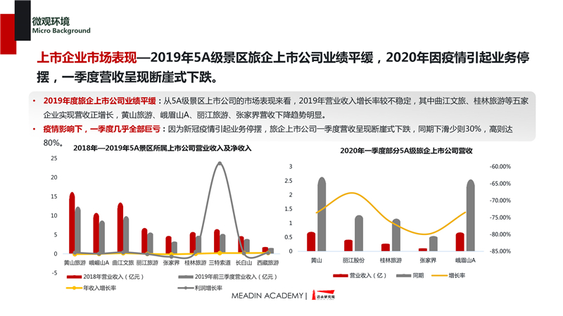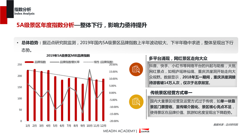 品牌白皮书· 中国5A级景区品牌发展报告(2019~2020) 迈点研究院 · 张迪 · 2020-05-29 08:00:43 分享到 打开微信“扫一扫”,打开网页后点击屏幕右上角分享按钮。 数据显示,2019年度5A级景区品牌整体业绩平缓,年度品牌指数整体下行。基于基础数据及市场趋向,迈点研究院提出相关建议总结及展望分析,以期助力中国景区品牌发展。 旅游景区 品牌发展报告 行业分析 8