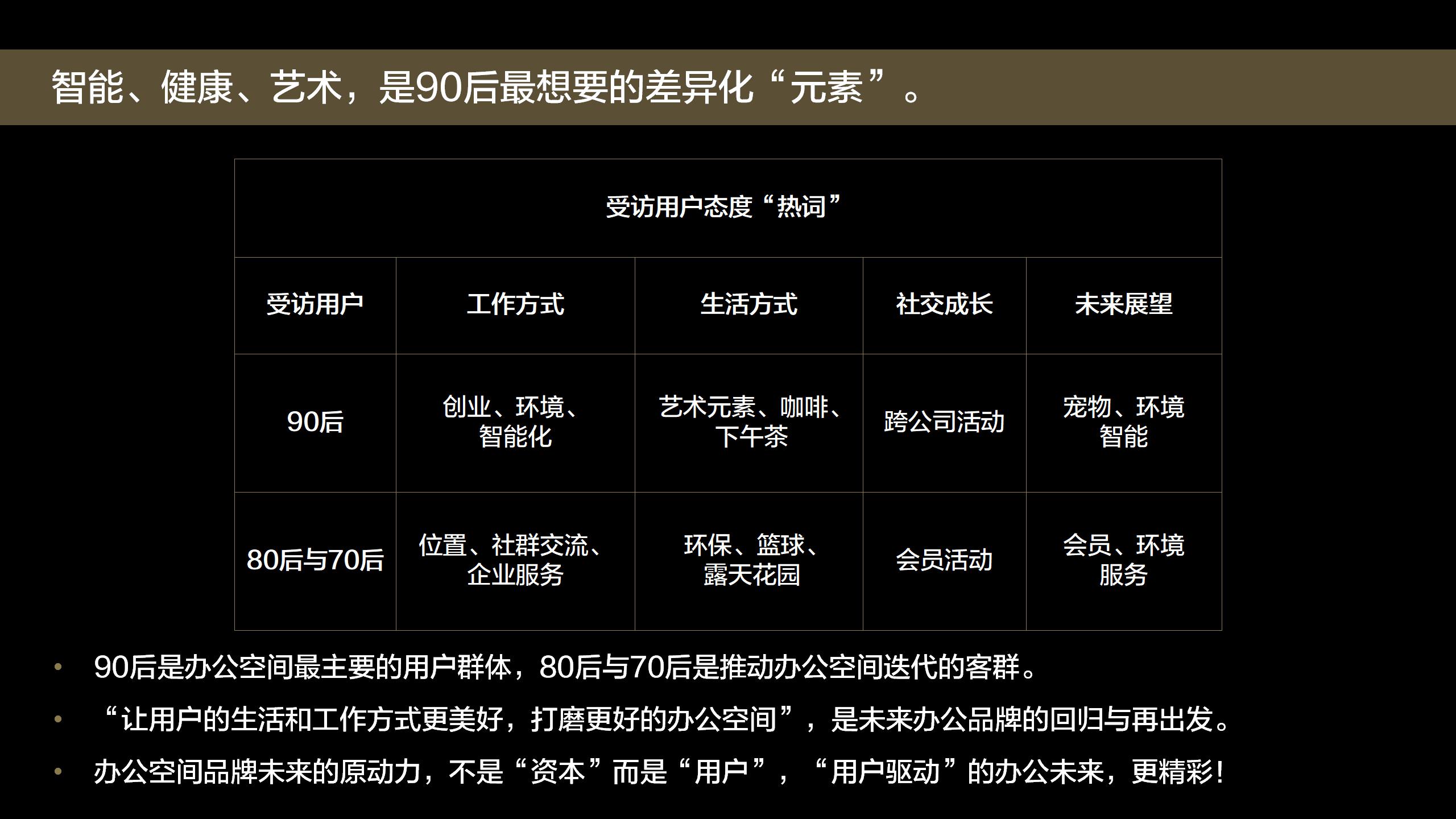 如果办公空间是“内容付费”。90后们在办公空间,最需要什么?作为运营方的品牌,该从哪里“操心”90后客群?在产品与服务如何体现?用户都愿意为哪些服务买单?90后和80后用户在需求上有什么不同?不同城市的办公空间有什么“彩蛋”?