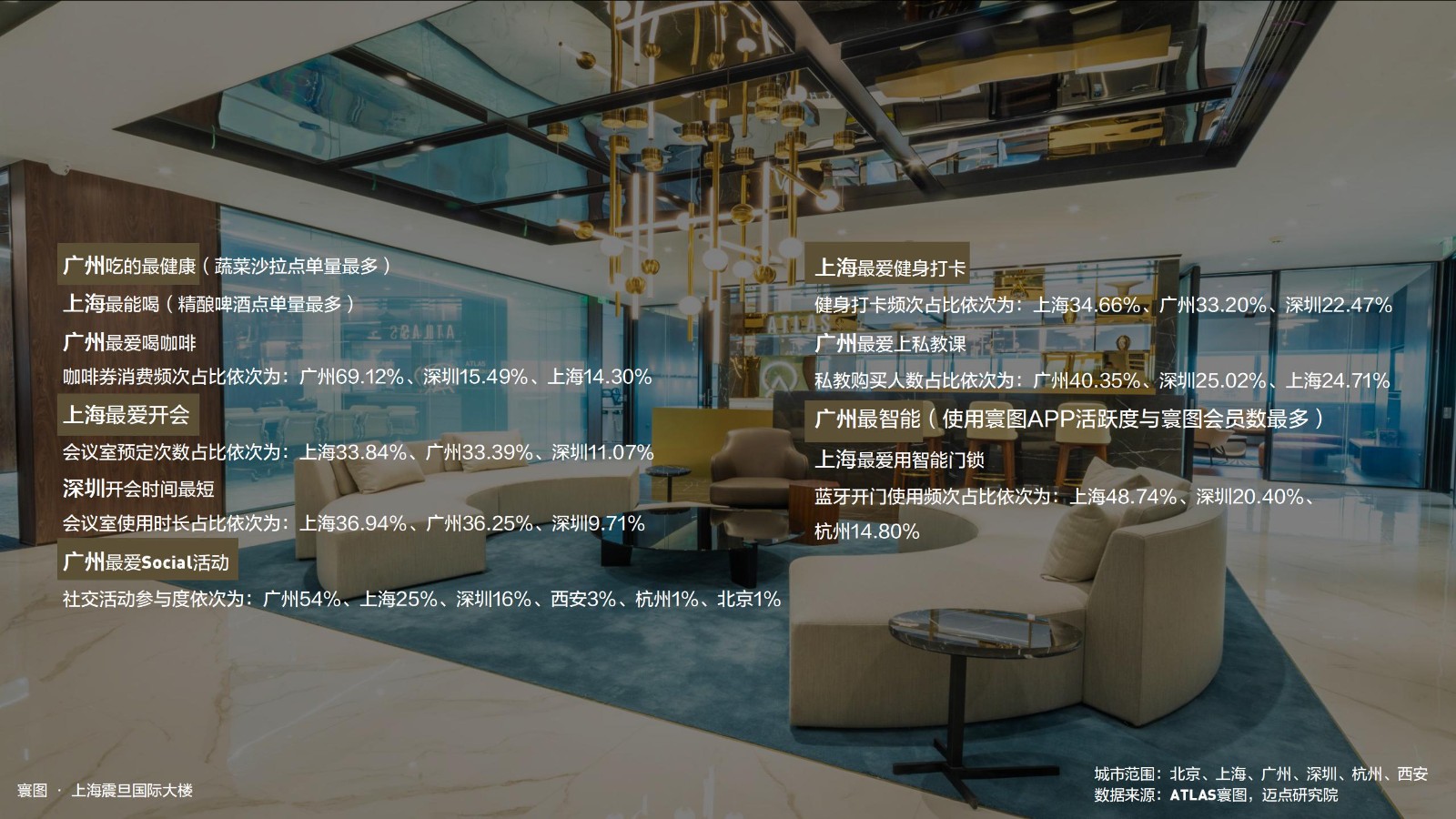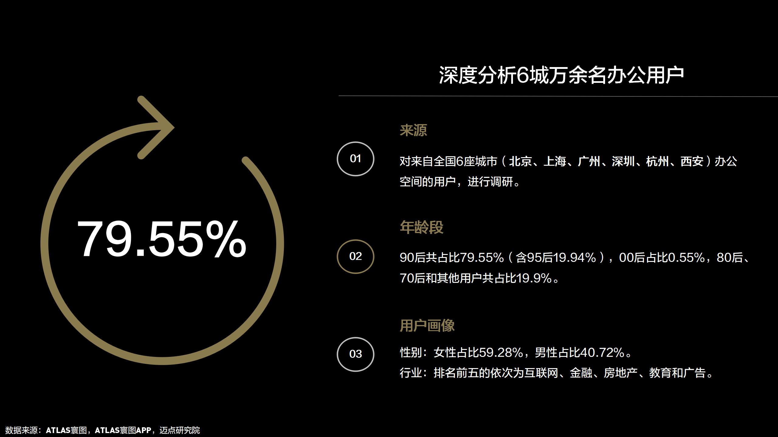 ATLAS寰图与迈点研究院强强联合。共同对全国6座城市,万余名用户进行抽查。通过问卷调研、数据分析、行业大数据和专业算法,细心打磨成《90后办公与生活方式报告(2020)》。