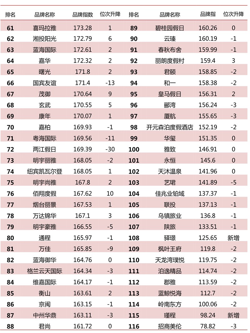 3.监测范围:国际高端酒店、国内高端酒店、全服务中档酒店、有限服务中档酒店、经济型酒店、平价酒店、精品酒店、客栈民宿等八大类目的865家市场主流旅游住宿业品牌。