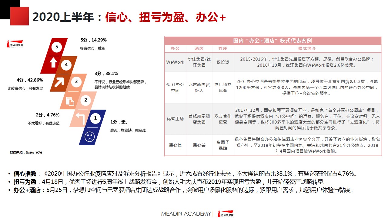中国办公空间品牌发展报告(2019-2020) 迈点研究院 · 徐益文 · 2020-07-23 14:20:00 分享到 打开微信“扫一扫”,打开网页后点击屏幕右上角分享按钮。 后疫情时期,办公空间品牌都在“存量”中探索提质增量发展的路径,如何跑通从消费者到生态的场景模式直至盈利?办公空间的未来什么样? 联合办公 共享办公 写字楼 行业报告 7