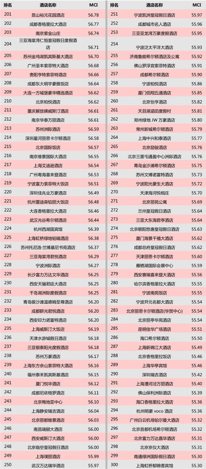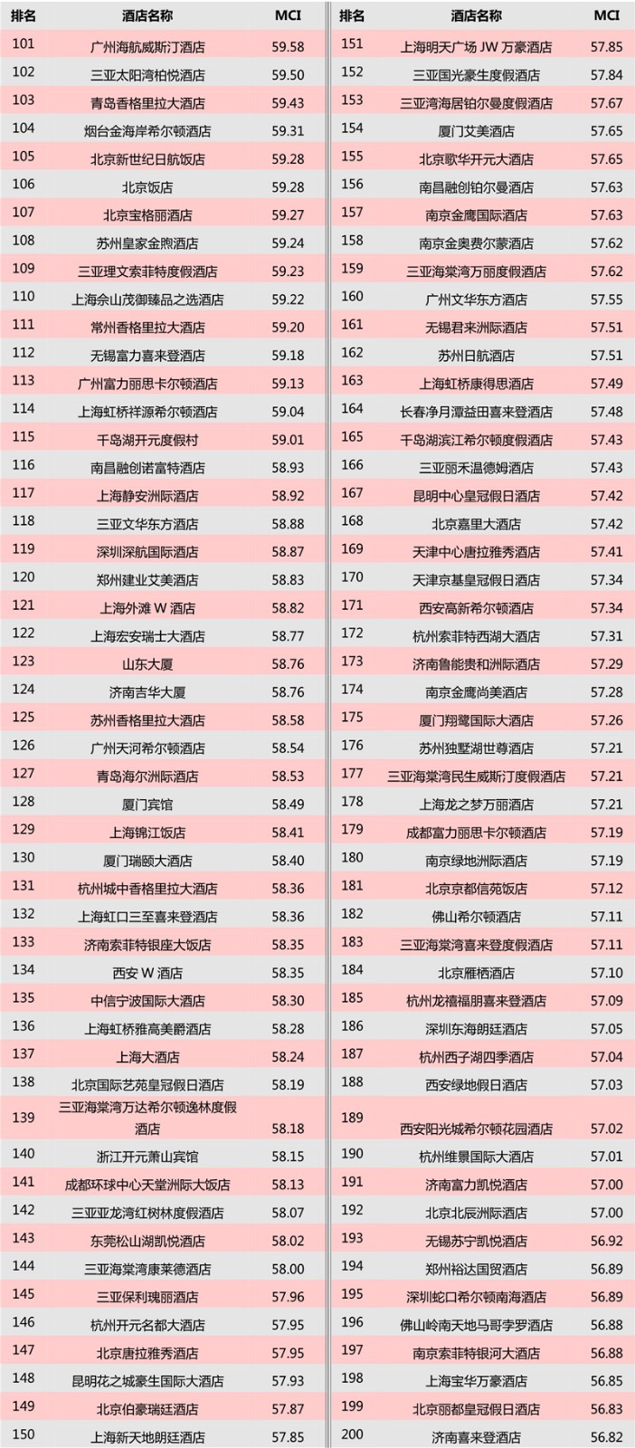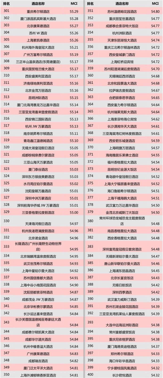三亚亚特兰蒂斯酒店、南京金陵饭店、上海金茂君悦大酒店位于前三甲;山西饭店、上海大厦跻身榜单前十。