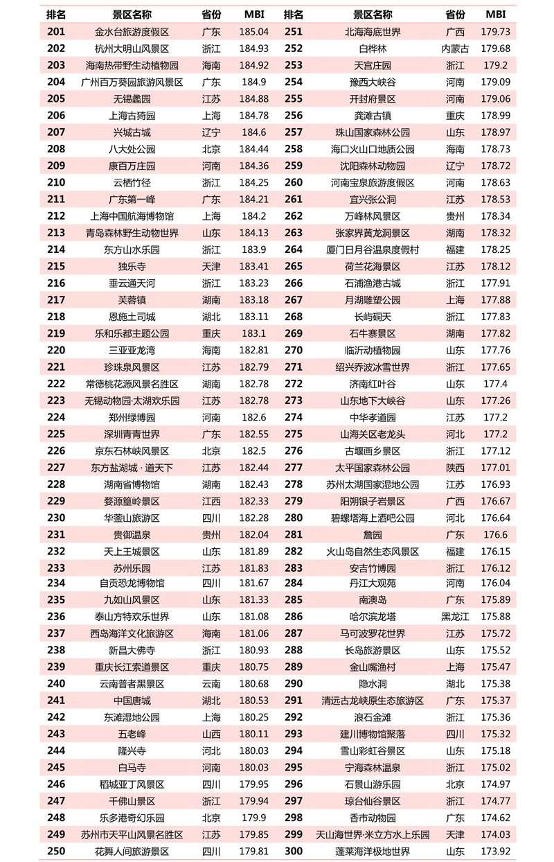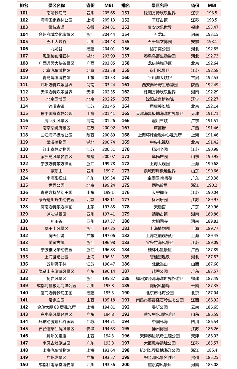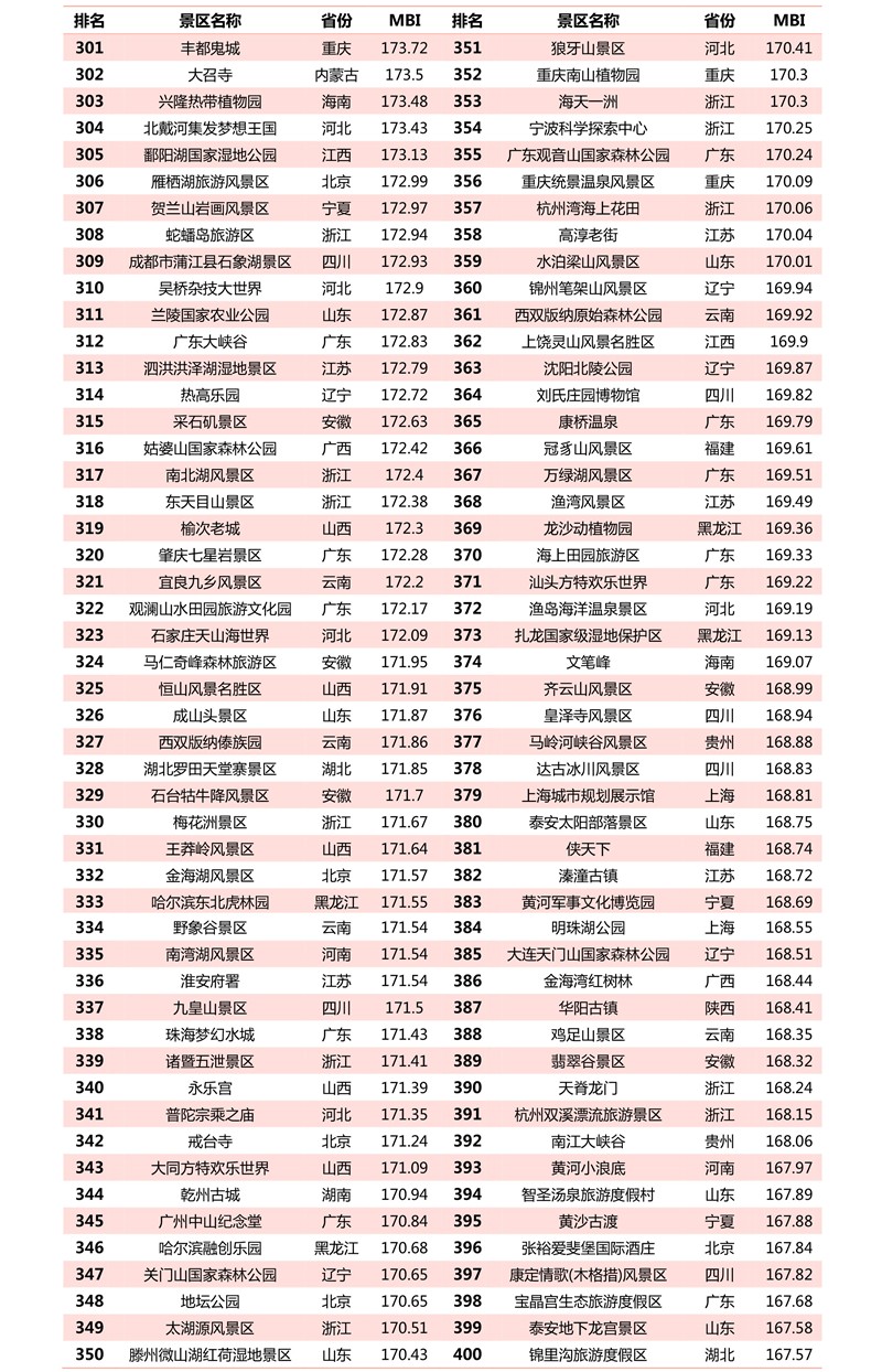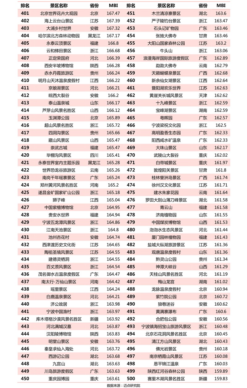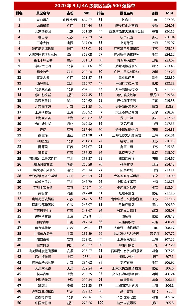 “2020年9月4A级景区品牌500强榜单”数据来源于迈点品牌指数MBI,根据9月迈点品牌指数MBI的2829个4A景区数据汇总统计而成。具体说明如下: