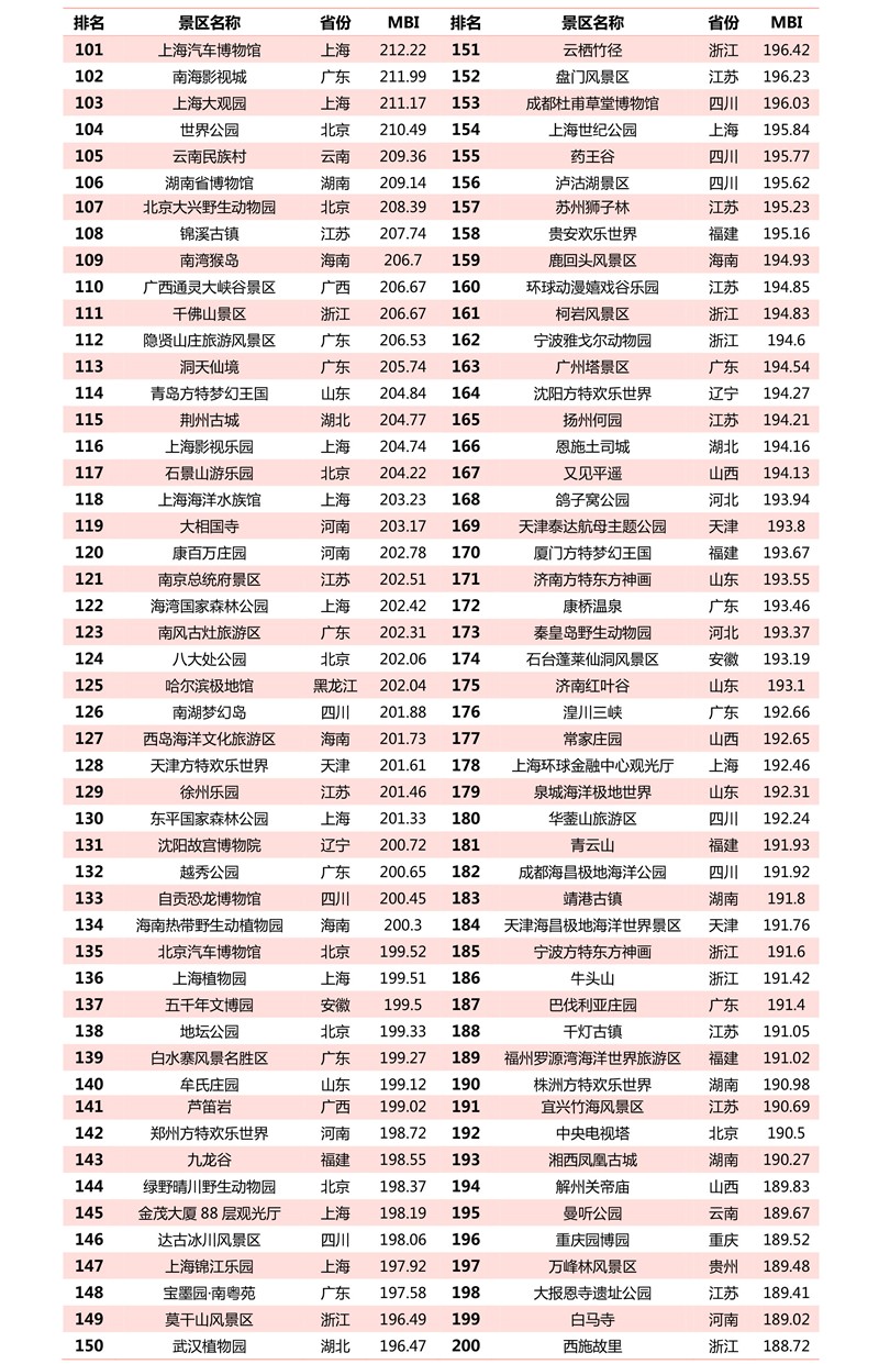 1. 迈点品牌指数MBI(景区品牌部分)说明