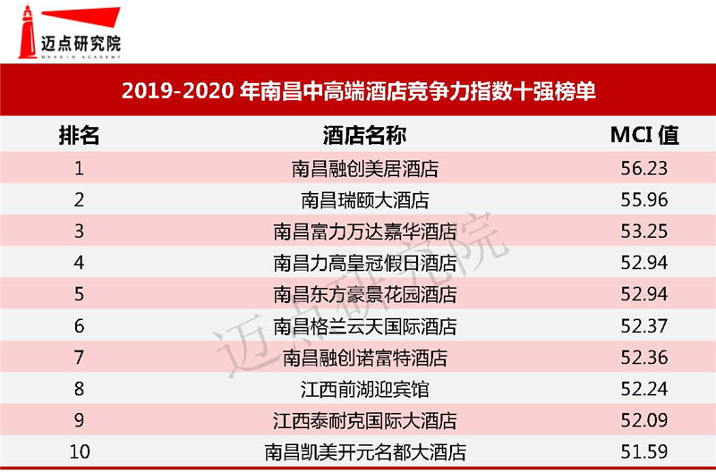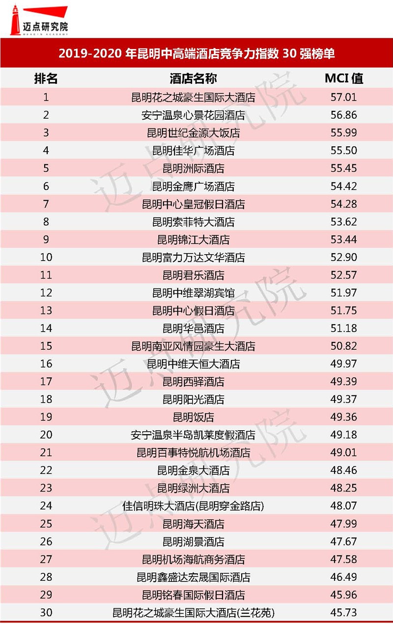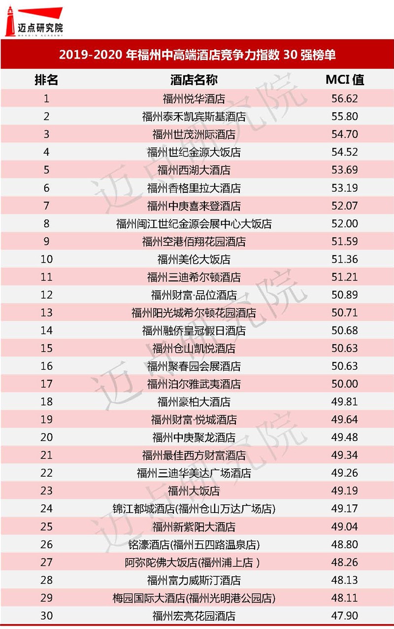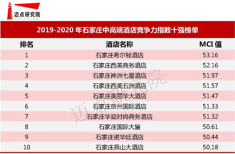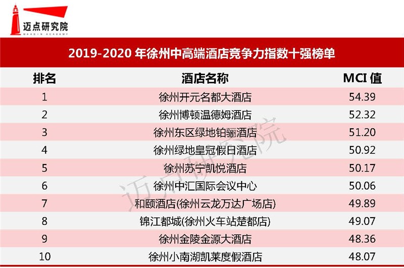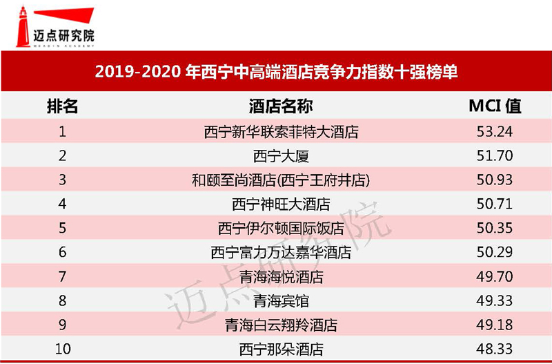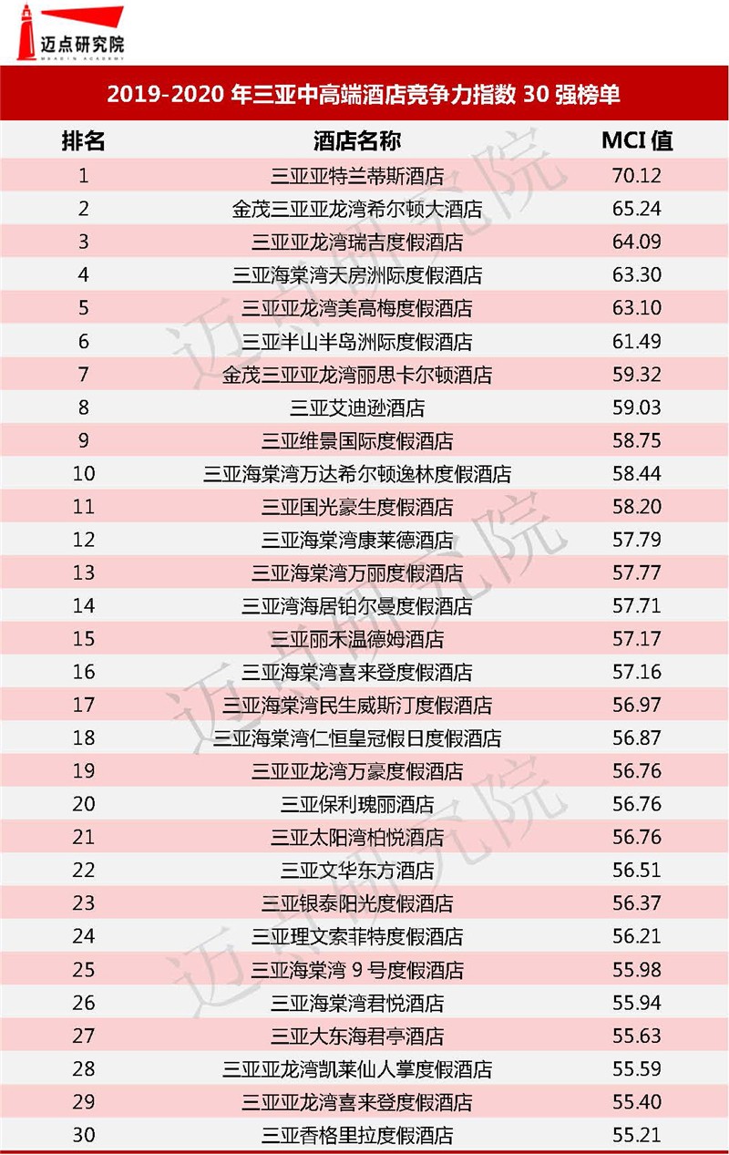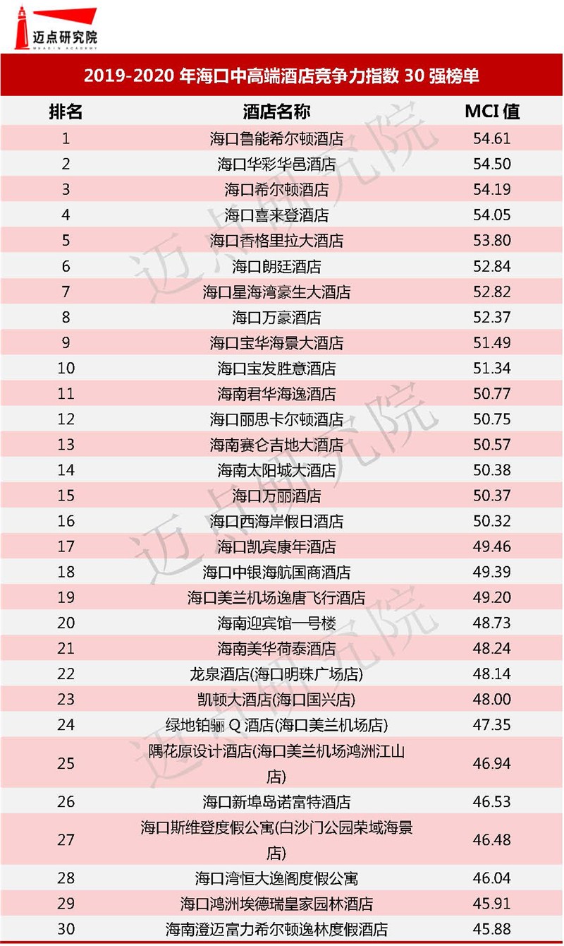2019-2020年50个城市中高端酒店竞争力指数排行榜(下) 迈点研究院 · 2020-12-10 08:50:00 分享到 打开微信“扫一扫”,打开网页后点击屏幕右上角分享按钮。 酒店竞争力指数是由品牌中国战略规划院指导,迈点研究院独家发布,通过监测单体酒店在互联网和移动互联网的用户点评、运营、媒体数据,用以反映一段时期内酒店的运营力、媒体关注度和客群喜爱度。 50个城市中高端酒店竞争力指数头部排名情况 酒店 中高端酒店 排行榜 9