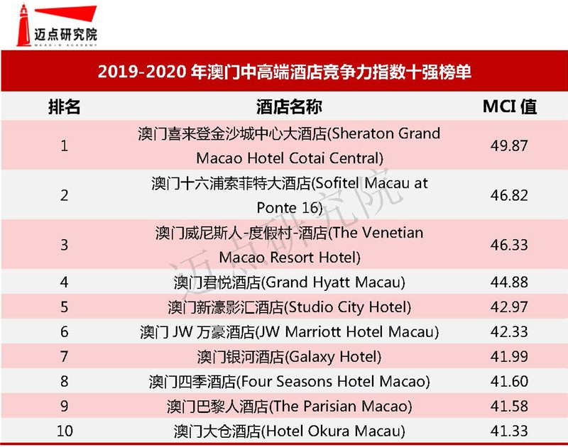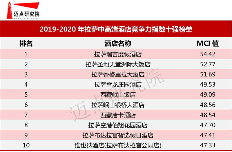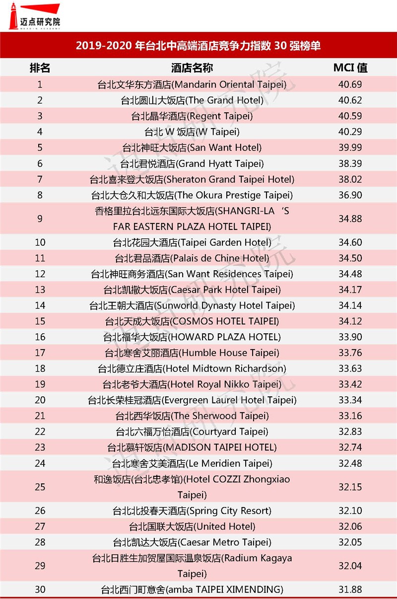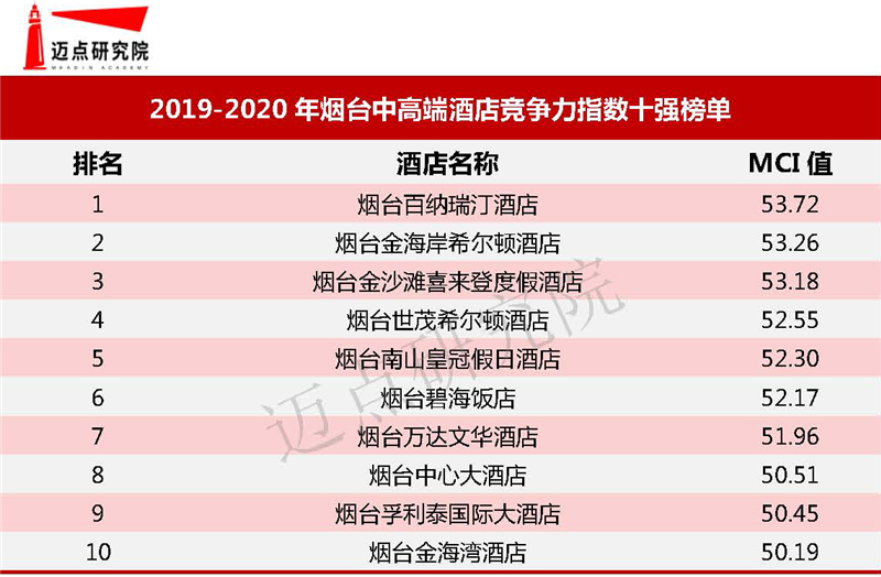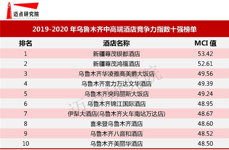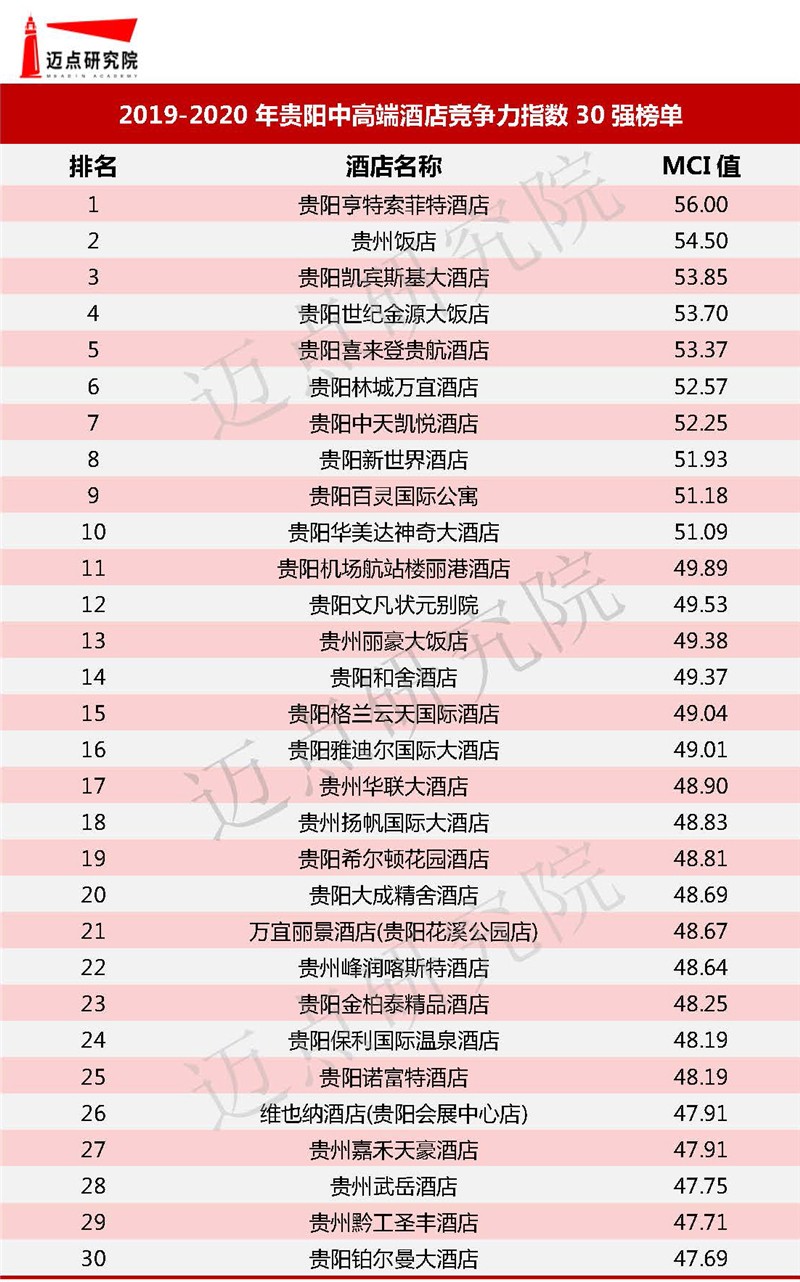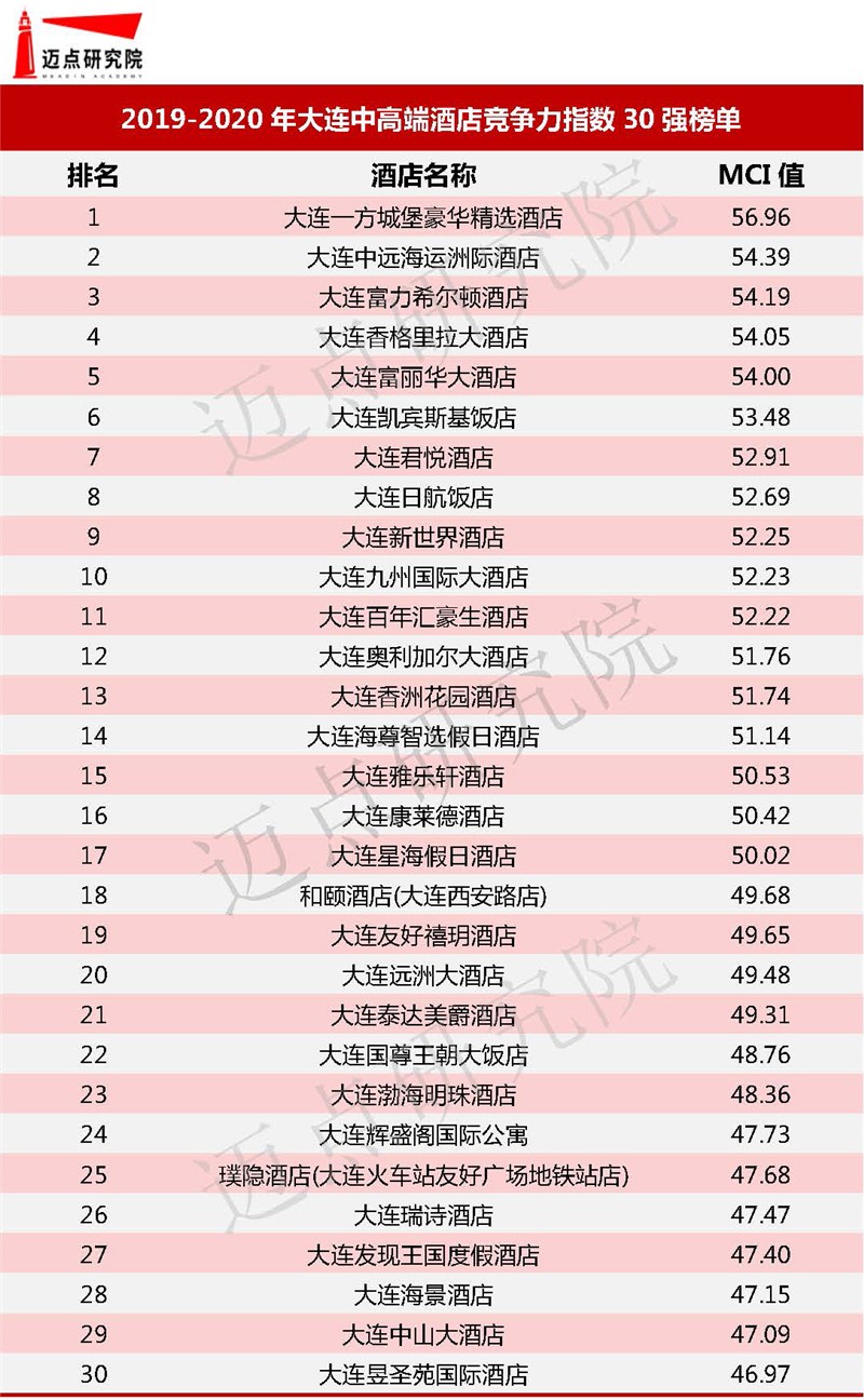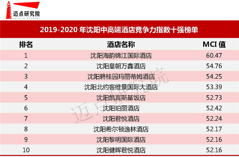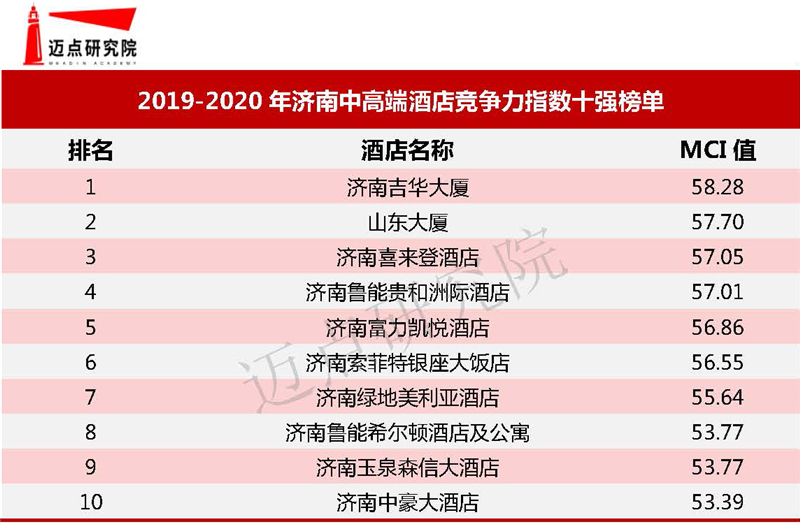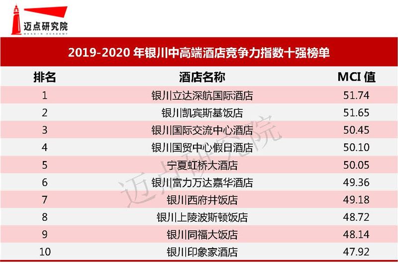 2019-2020年50个城市中高端酒店竞争力指数排行榜(下) 迈点研究院 · 2020-12-10 08:50:00 分享到 打开微信“扫一扫”,打开网页后点击屏幕右上角分享按钮。 酒店竞争力指数是由品牌中国战略规划院指导,迈点研究院独家发布,通过监测单体酒店在互联网和移动互联网的用户点评、运营、媒体数据,用以反映一段时期内酒店的运营力、媒体关注度和客群喜爱度。 50个城市中高端酒店竞争力指数头部排名情况 酒店 中高端酒店 排行榜 9