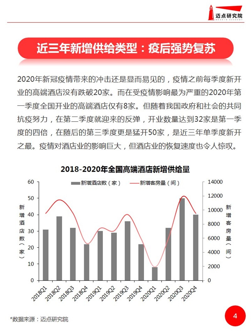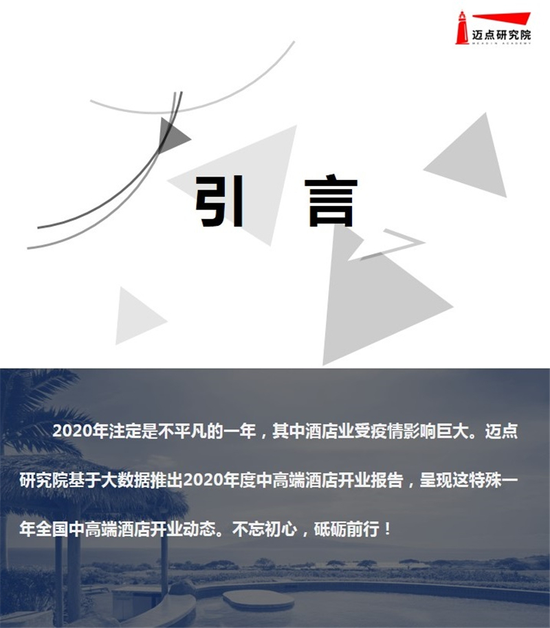 2020年全国高端酒店开业统计报告 迈点研究院 · 崔志远 · 2020-12-31 08:40:11 分享到 打开微信“扫一扫”,打开网页后点击屏幕右上角分享按钮。 疫后酒店强势复苏,高端酒店扩张速度大幅提升,2020年第三季度新开业酒店数量达到近三年峰值;华东西南新开酒店增量较多,仍为高端酒店重点投资区域。 高端酒店 开业报告 开业统计 22