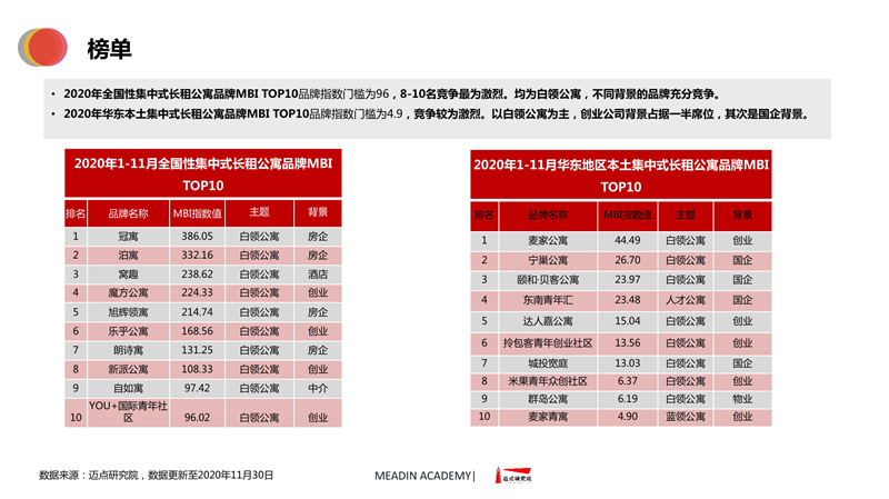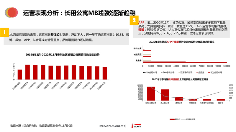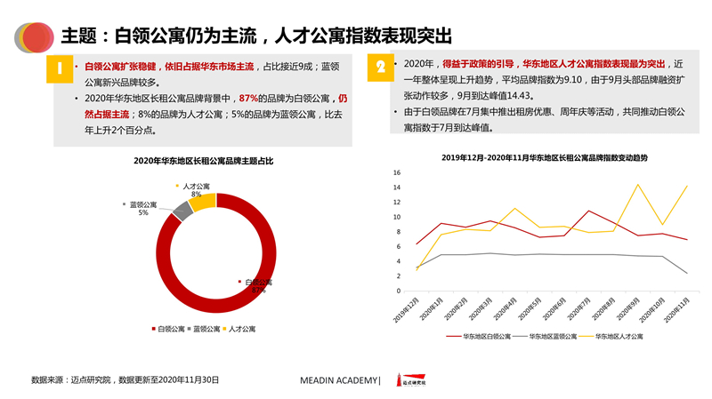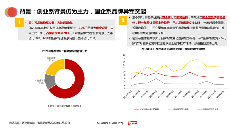 2020年华东地区长租公寓品牌发展报告 迈点研究院 · 刘倩 · 2021-01-04 07:12:48 分享到 打开微信“扫一扫”,打开网页后点击屏幕右上角分享按钮。 “轻重并举”、“多品牌战略”成为品牌重要策略之一,新技术和产业互联网将重新塑造行业的未来。 品牌发展报告 长租公寓 公寓数据 10