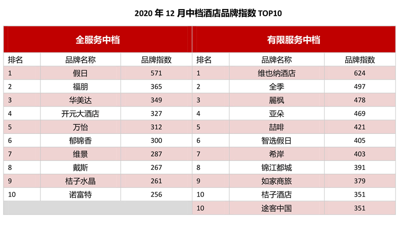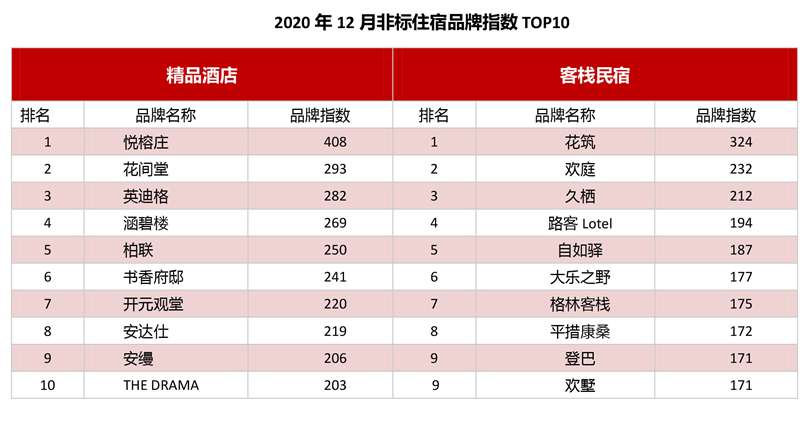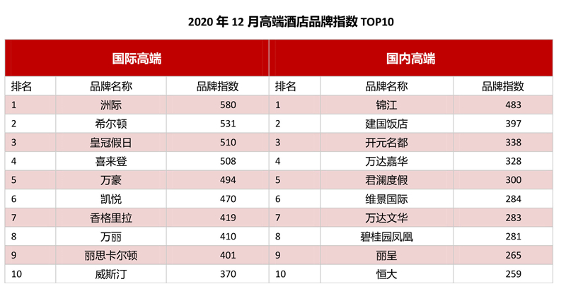 12月,国内高端酒店品牌保持不断增长态势,客栈民宿品牌花筑进入百强榜单;新型细分主题酒店品牌表现亮眼,潮牌、社交主题酒店迎合新消费人群喜好;酒店战略投资、跨界合作、产品打造持续进行。