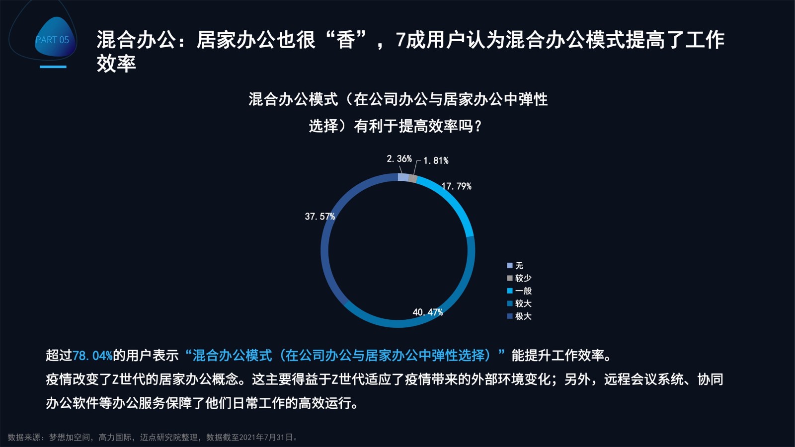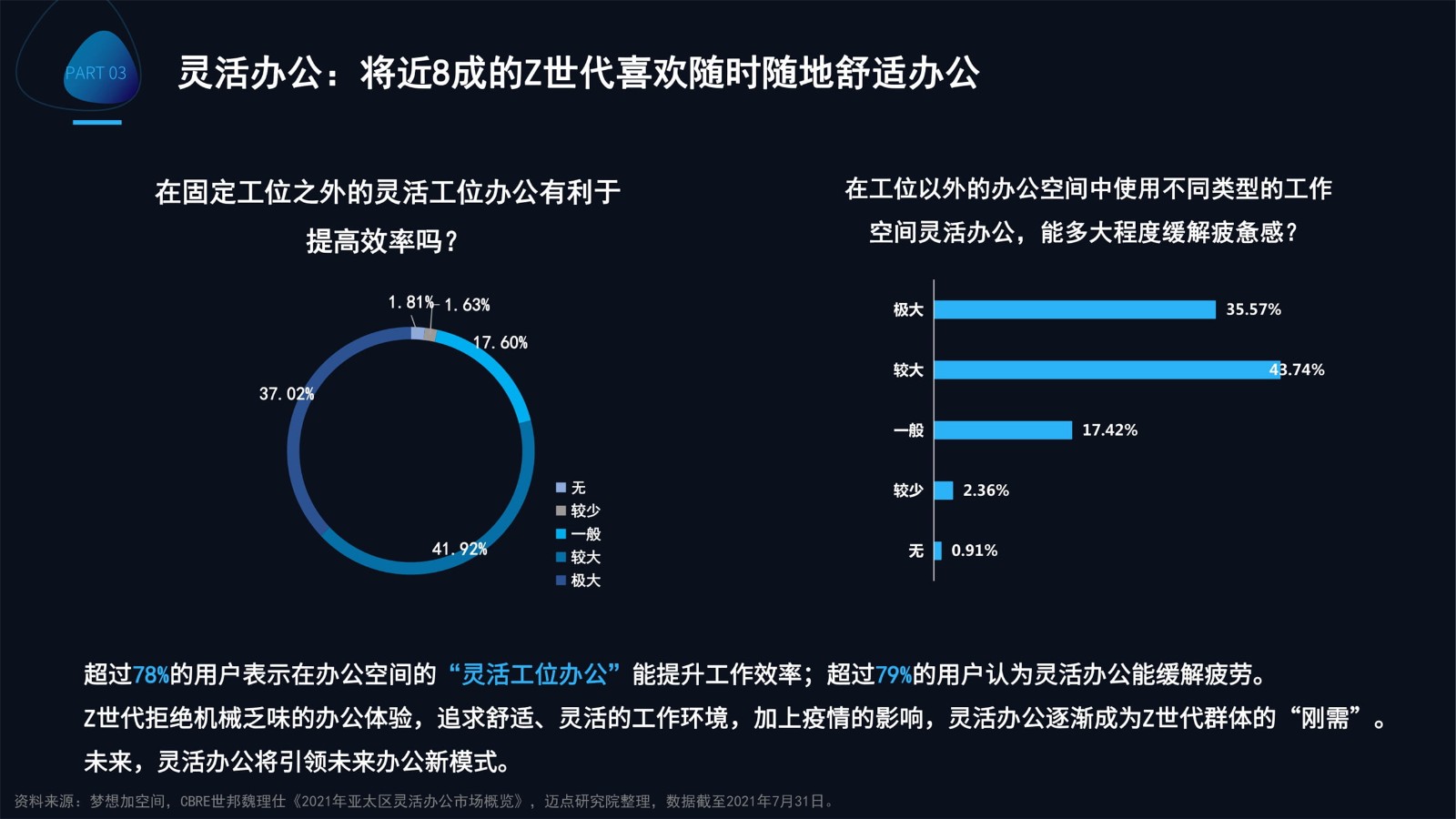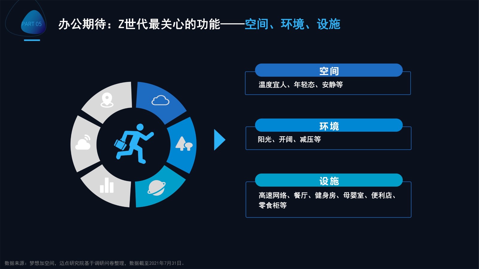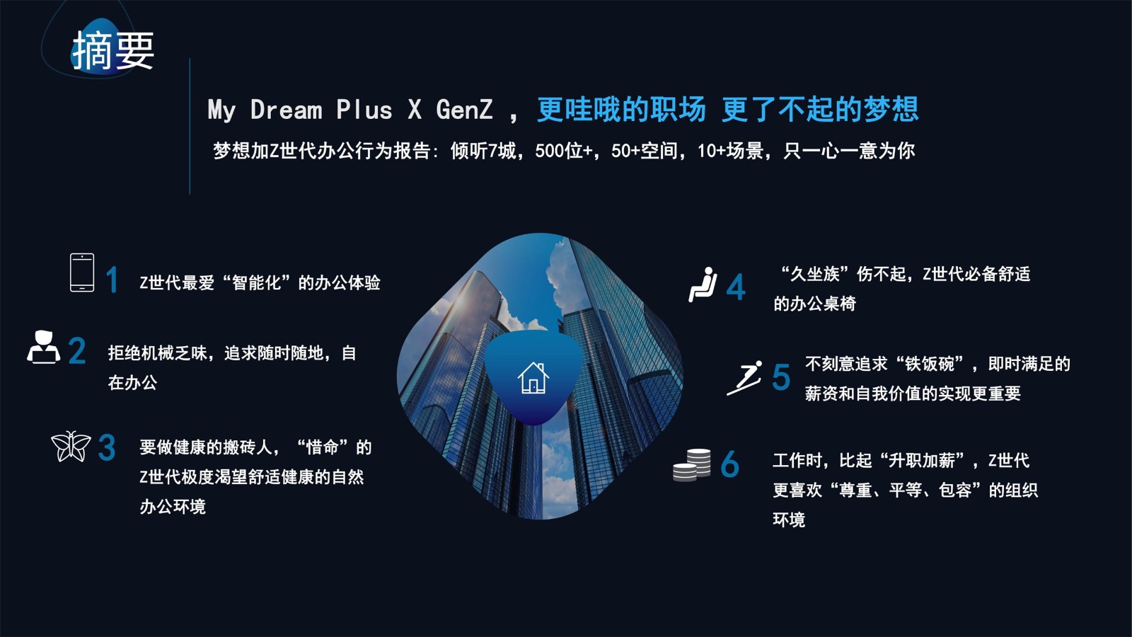 梦想加空间与迈点研究院强强联合,共同对全国7座城市的500余名用户进行调研和分析,展现Z世代群体的办公行为和他们期待的办公场景。