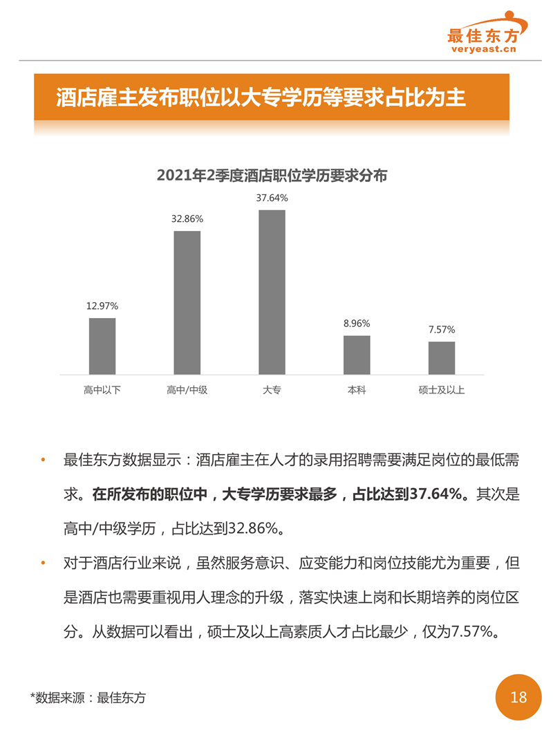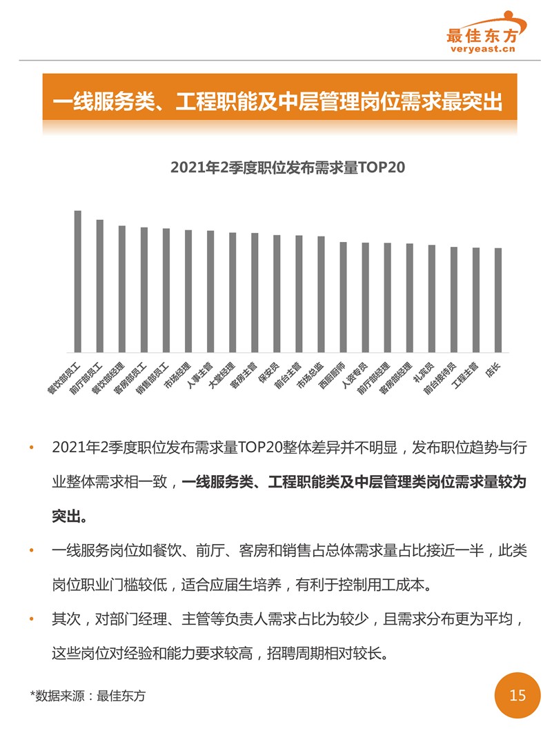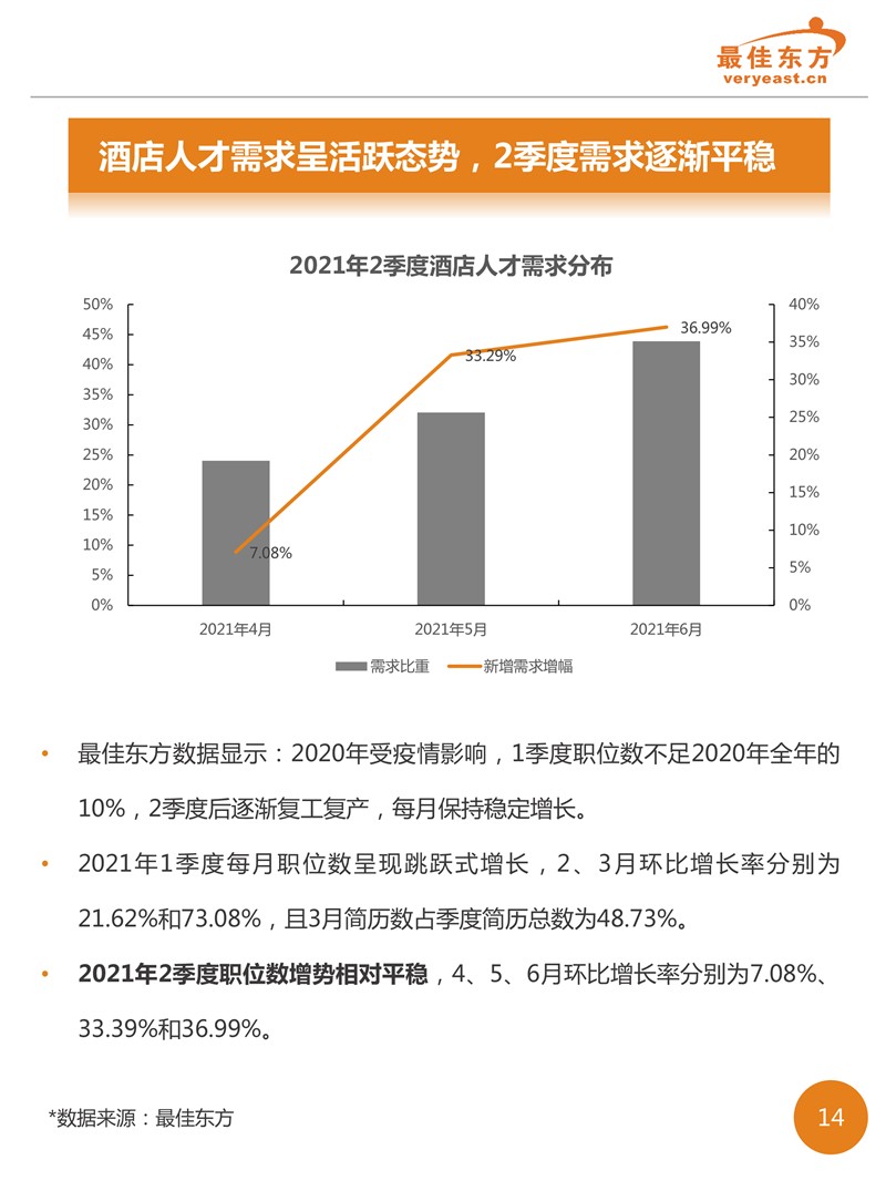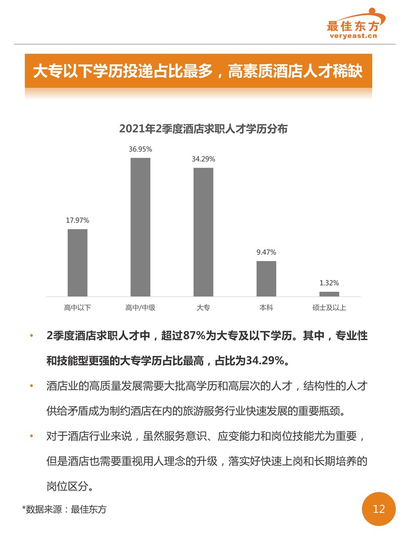 2021年2季度酒店人才供需数据报告 最佳东方 · 2021-09-18 08:00:00 分享到 打开微信“扫一扫”,打开网页后点击屏幕右上角分享按钮。 2021年2季度酒旅业回暖之后,线上职位发布数量相较于线上简历数增势明显,有效缓解了职位竞争的激烈态势。 酒店 人力资源 数据 0