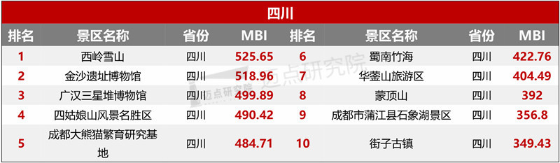 1. 迈点品牌指数 MBI(景区品牌部分)说明