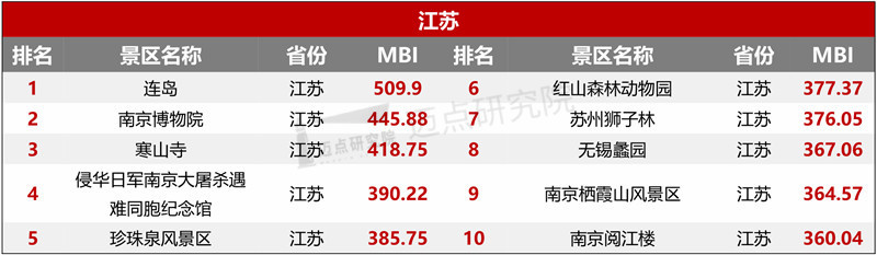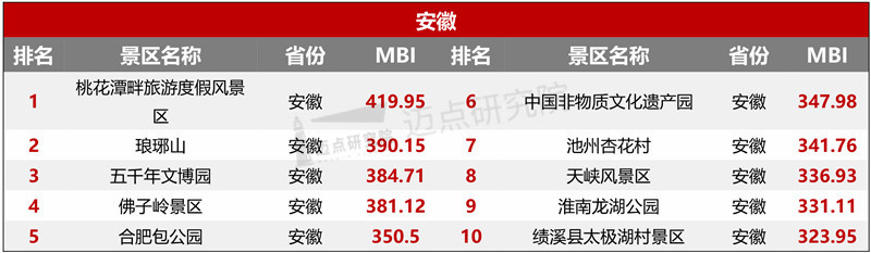 “2021年8月4A级景区品牌500强榜单”数据来源于迈点品牌指数MBI,根据8月迈点品牌指数MBI的2848个4A景区数据汇总统计而成。具体说明如下:
