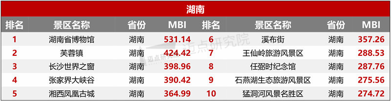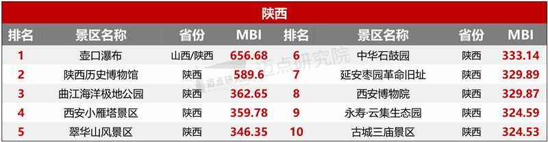 榜单中,上海博物馆、壶口瀑布、武汉欢乐谷、天后宫、陕西历史博物馆、黄姚古镇、花园村、湖南省博物馆、西岭雪山、金沙遗址博物馆位列TOP10