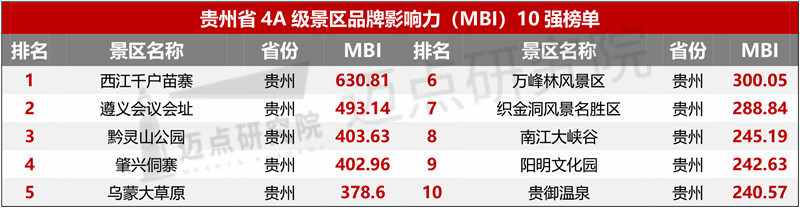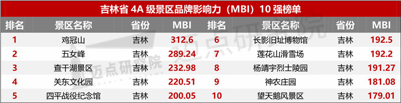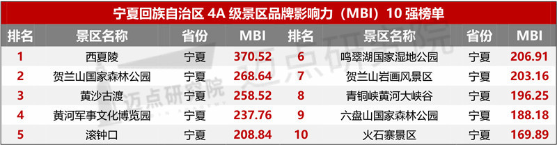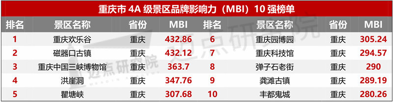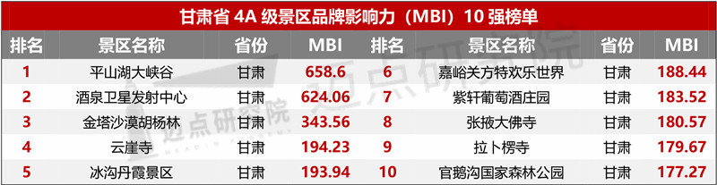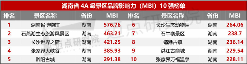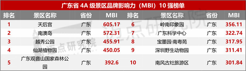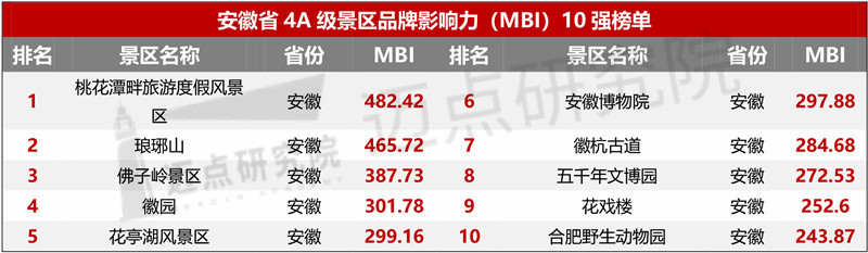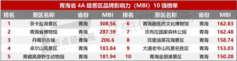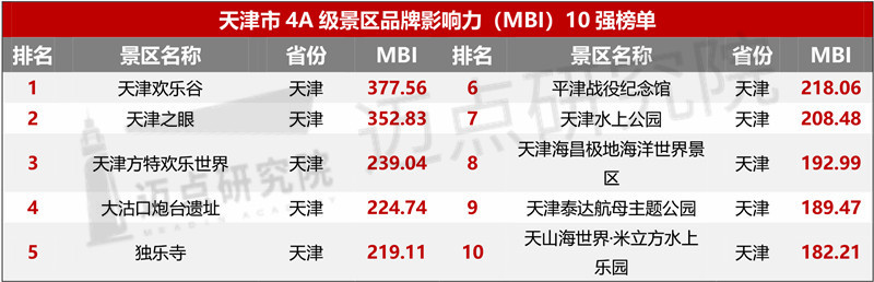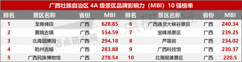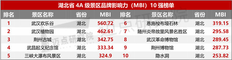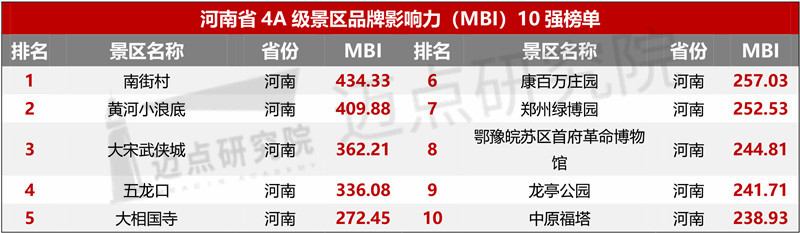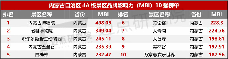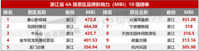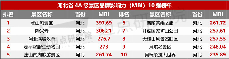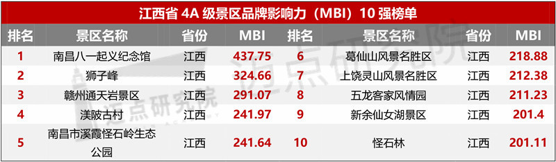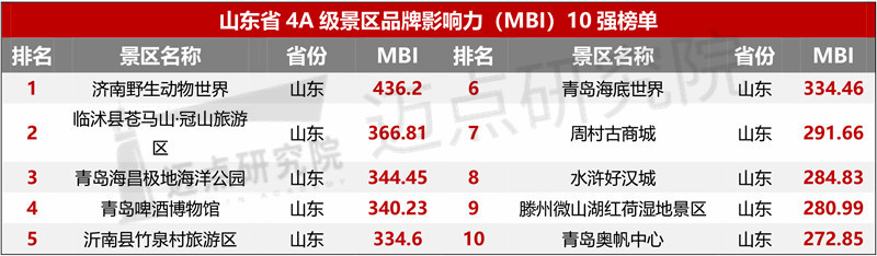 2021年10月4A级景区品牌影响力(MBI)500强榜单