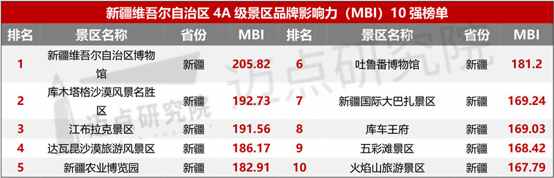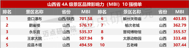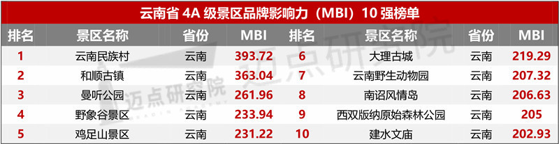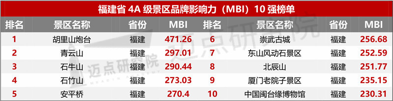 “2021年10月4A级景区品牌500强榜单”数据来源于迈点品牌指数MBI,根据10月迈点品牌指数MBI的2849个4A景区数据汇总统计而成。具体说明如下: