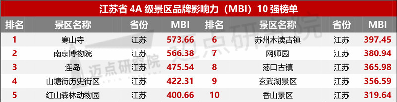 江苏省上榜景区新增数量最多,甘肃省景区MBI指数增长最快