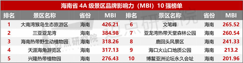 从省份分布来看,江苏(43家)、浙江(37家)稳居前列,广东北京位列其后。10月,江苏省上榜景区数量新增7家,环比上月,陕西省景区上榜数量增幅最快,环比增幅为56.25%,相比上月新增9家;从MBI指数来看,甘肃省景区MBI指数增幅最快,MBI指数增幅为63.56%,景区品牌影响力提升明显。据悉,本月海南新增3家国家4A级旅游景区,文昌市海南铜鼓岭景区、五指山市红峡谷文化旅游区、屯昌县梦幻香山旅游区被评为国家4A级旅游景区;广西也在拟评定14家4A级旅游景区。