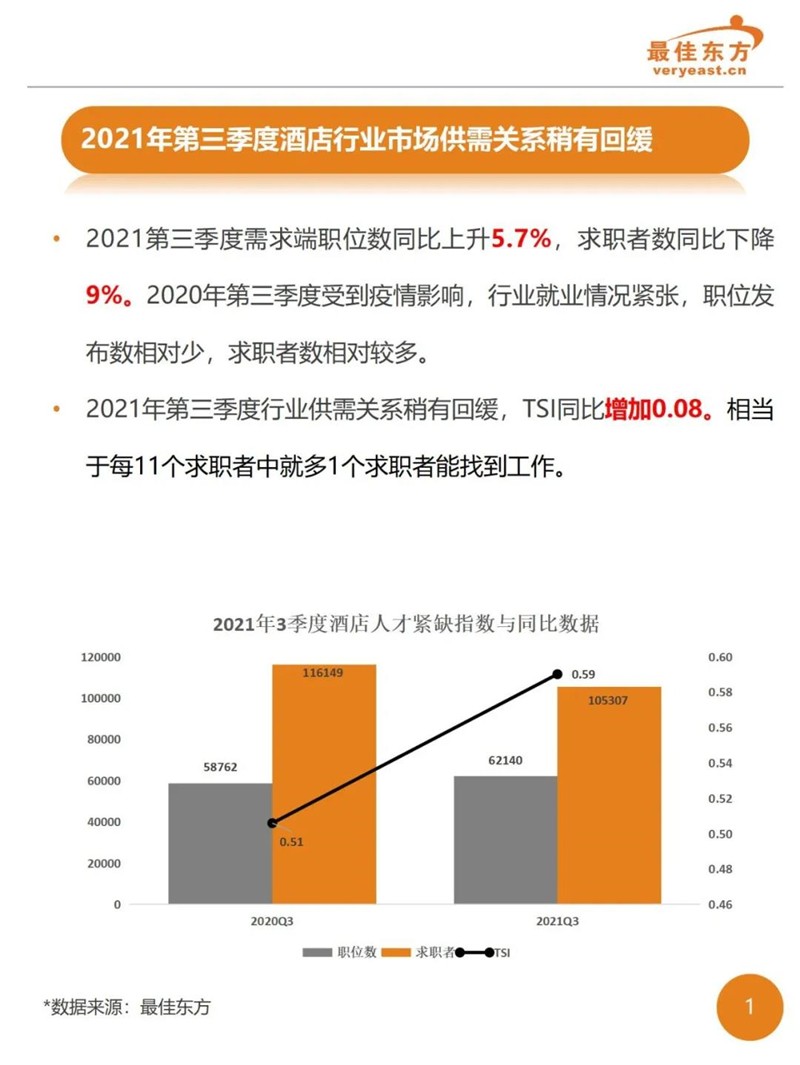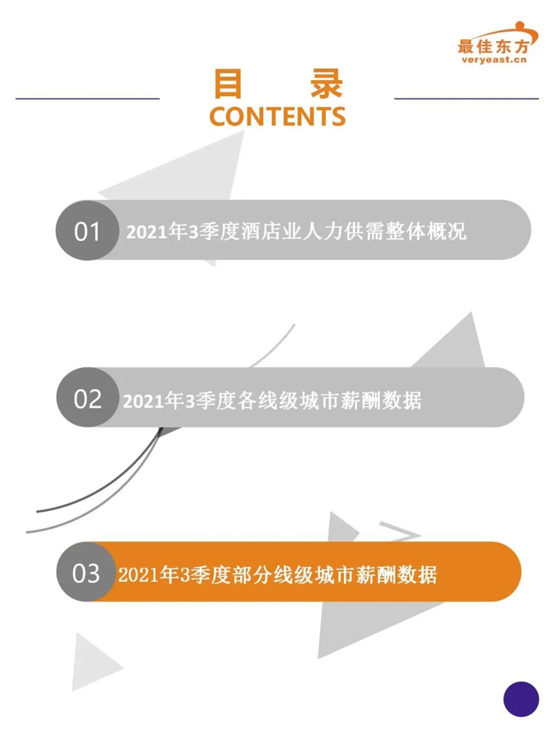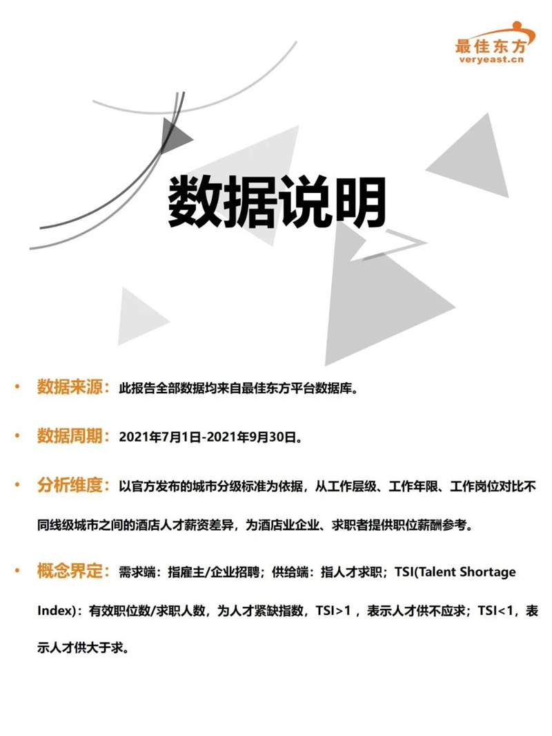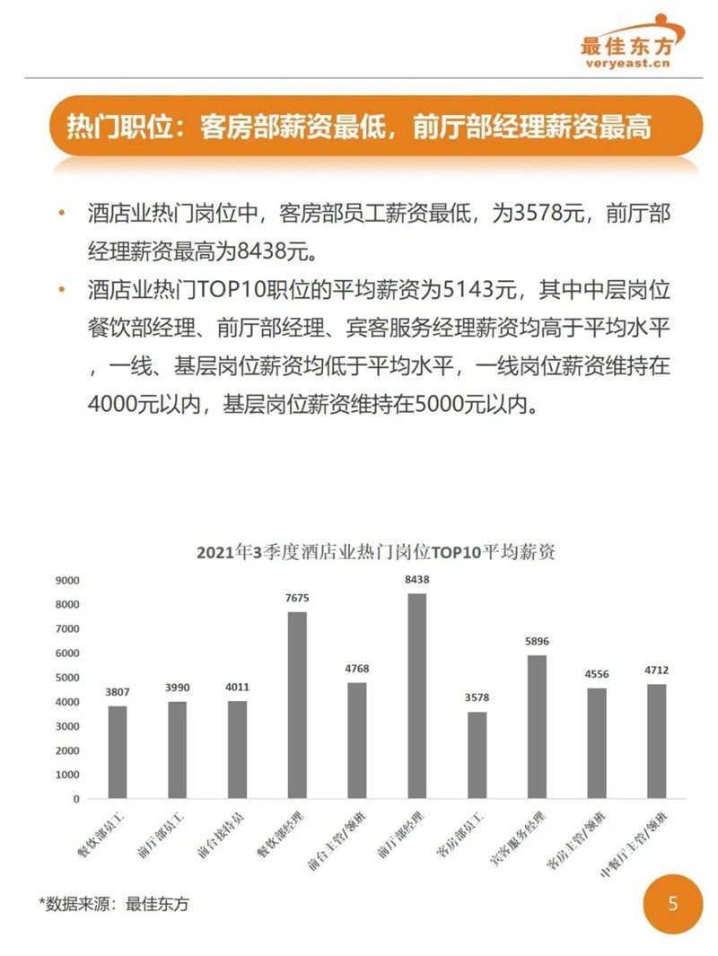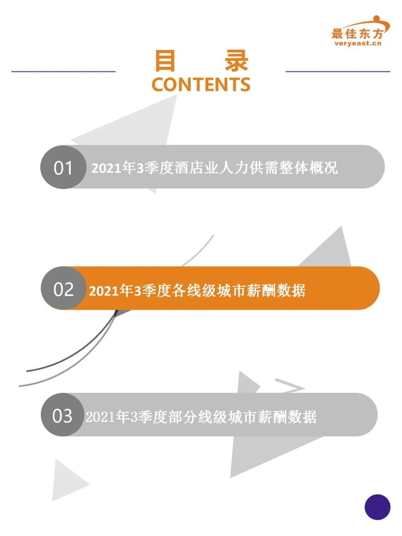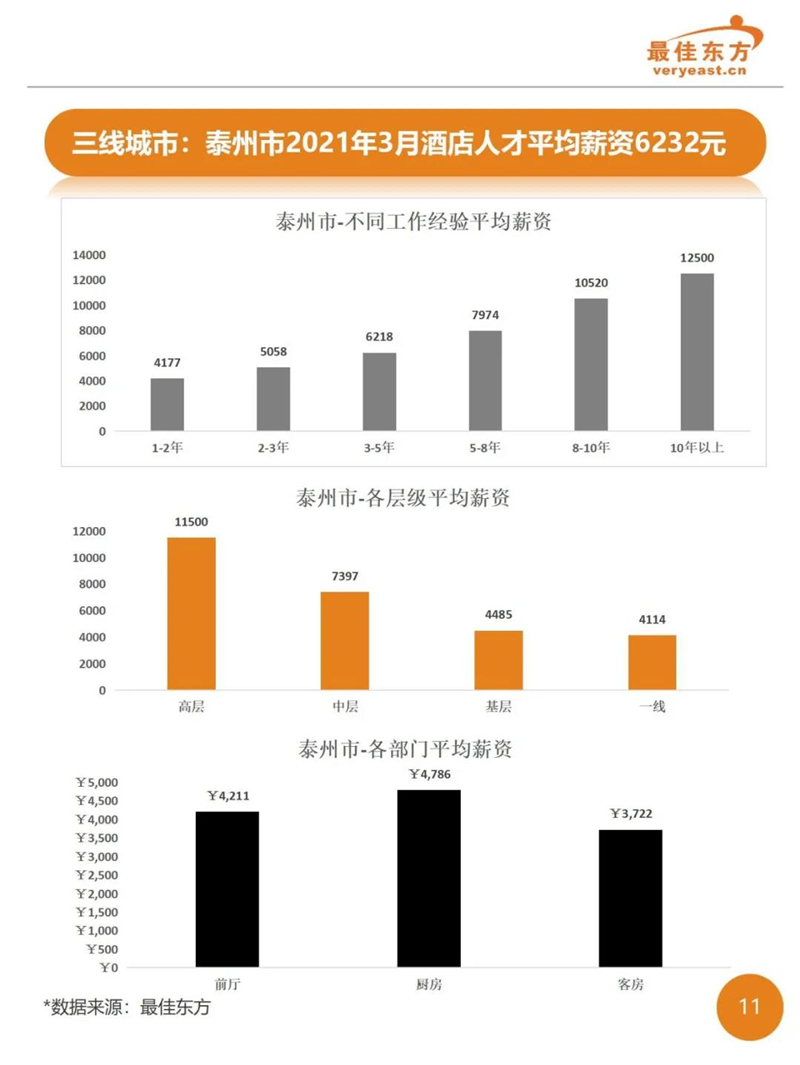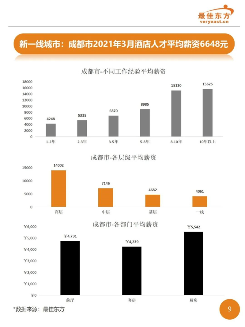 2021年3季度酒店业人力薪酬数据报告 最佳东方 · 2021-10-31 15:27:14 分享到 打开微信“扫一扫”,打开网页后点击屏幕右上角分享按钮。 2021年Q3酒店人平均薪资6374,薪资整体同比下降。 酒店 薪酬报告 0