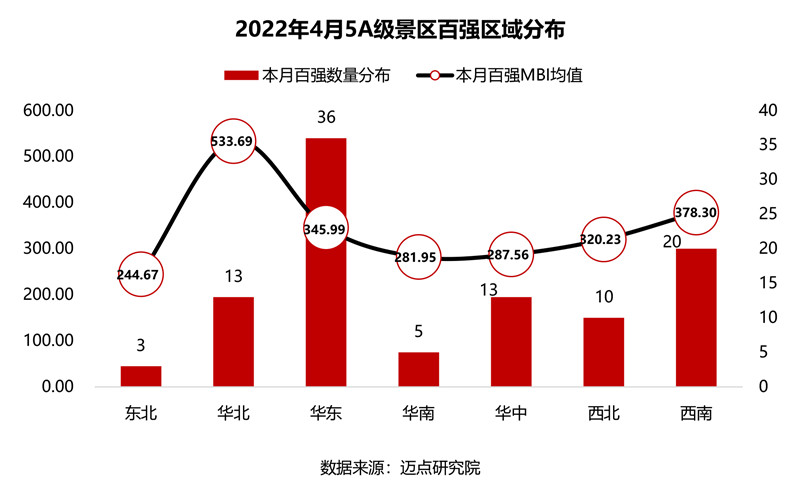 “2022年4月5A级景区品牌100强榜单”数据来源于迈点品牌指数MBI,根据4月迈点品牌指数MBI的306家景区数据汇总统计而成。具体说明如下: