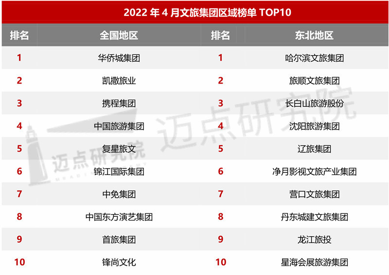 本月,华侨城集团、曲江文旅、凯撒旅业位列前三甲,另有携程集团、中国旅游集团、复星旅文、锦江国际集团、康旅集团、中免集团、中国东方演艺集团进入榜单前十。