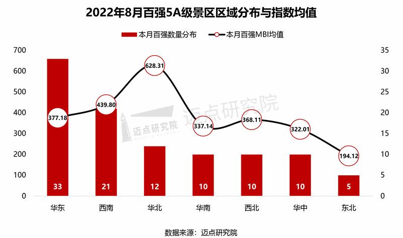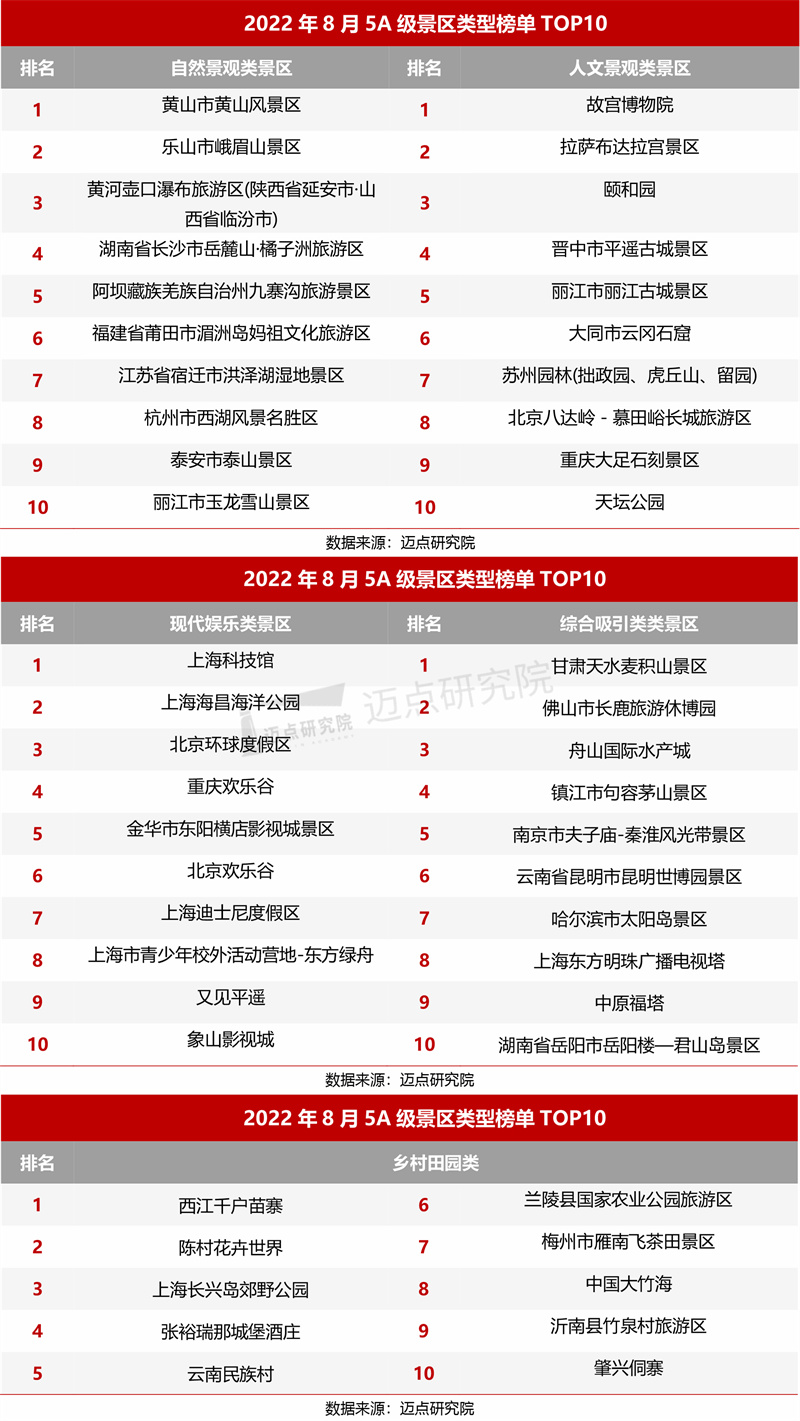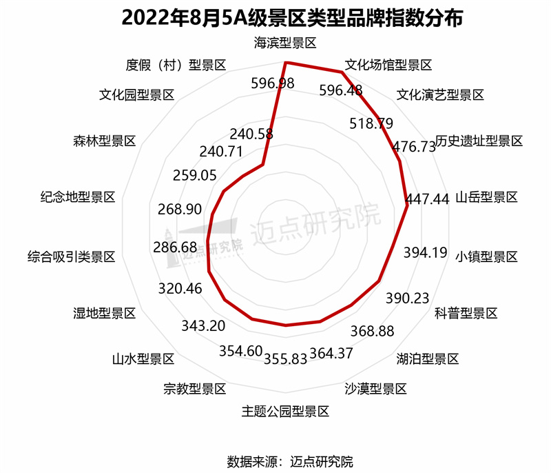 “2022年8月5A级景区品牌100强榜单”数据来源于迈点品牌指数MBI,根据8月迈点品牌指数MBI的318家景区数据汇总统计而成。具体说明如下: