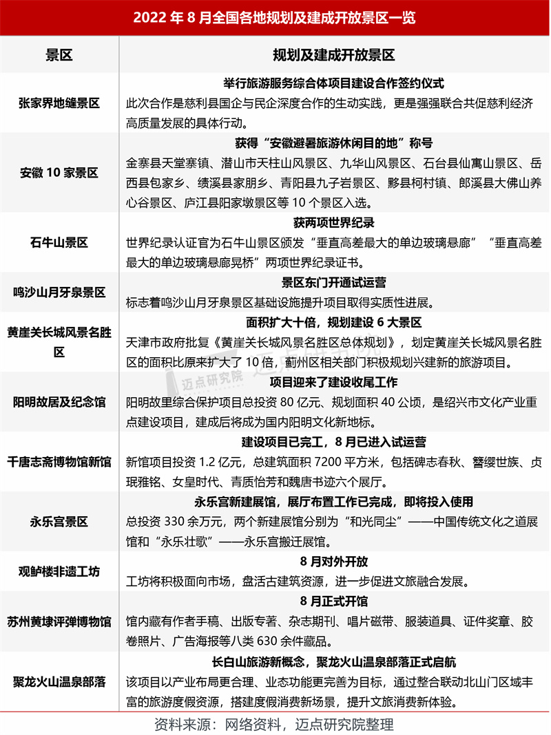 8月各地景区数据喜人,文旅融合构建沉浸式消费新场景,受暑期持续高温影响,避暑类景区空前火热。