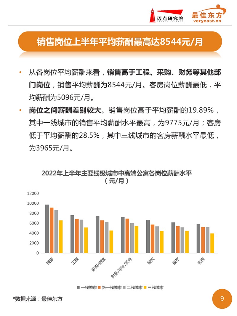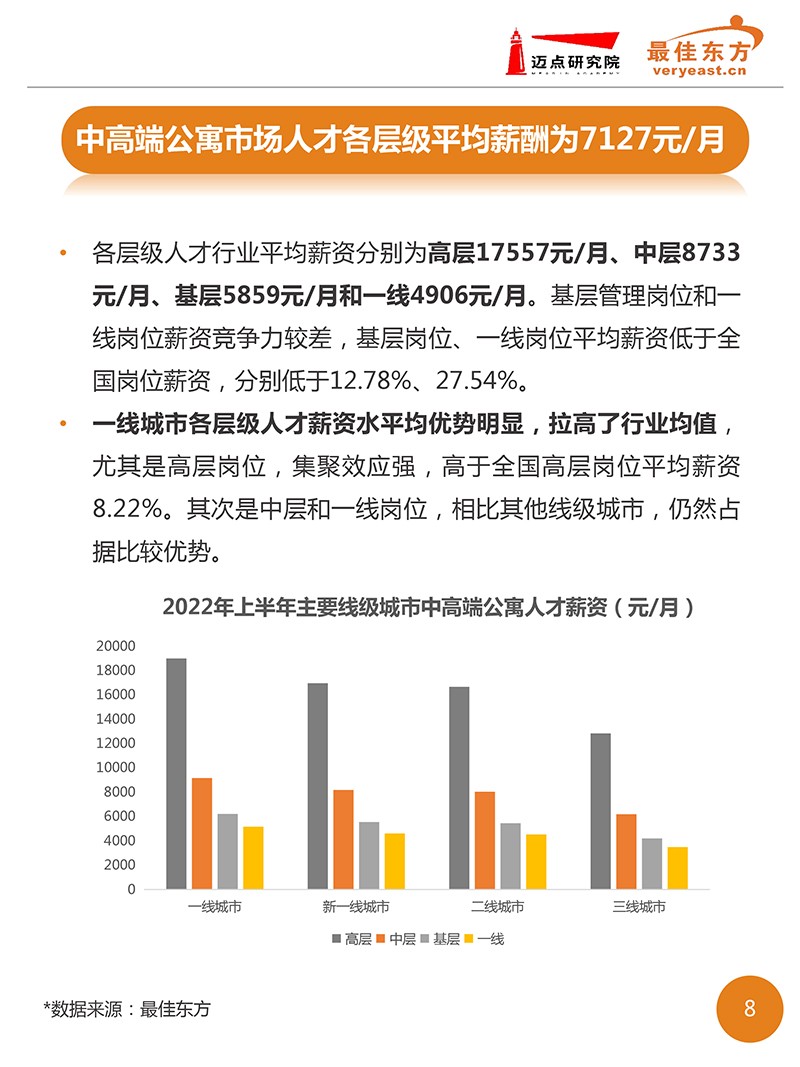 2022年上半年中高端公寓人才薪酬数据报告 迈点研究院 · 刘倩 · 2022-09-28 09:34:31 分享到 打开微信“扫一扫”,打开网页后点击屏幕右上角分享按钮。 2022年上半年中高端公寓市场人才平均薪酬为7127元/月。 长租公寓 薪酬报告 人才 0