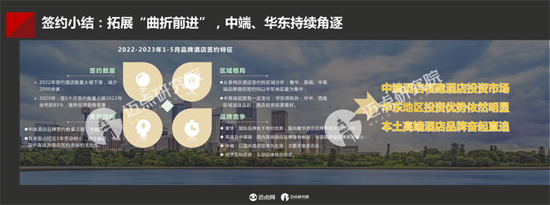2023年中国酒店投资与发展报告 迈点研究院 · 邢晶晶 · 2023-06-29 09:52:35 分享到 打开微信“扫一扫”,打开网页后点击屏幕右上角分享按钮。 2023年酒店投资市场环境向好趋势明显,各档次各品牌酒店开业、签约热度不减,同时面临新机遇、新周期和新挑战。 酒店 投资 迈点品牌发展大会 10