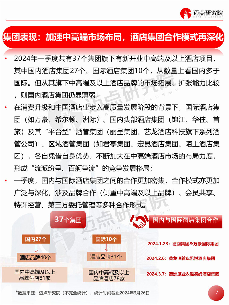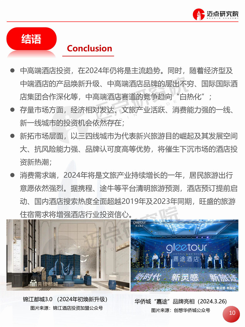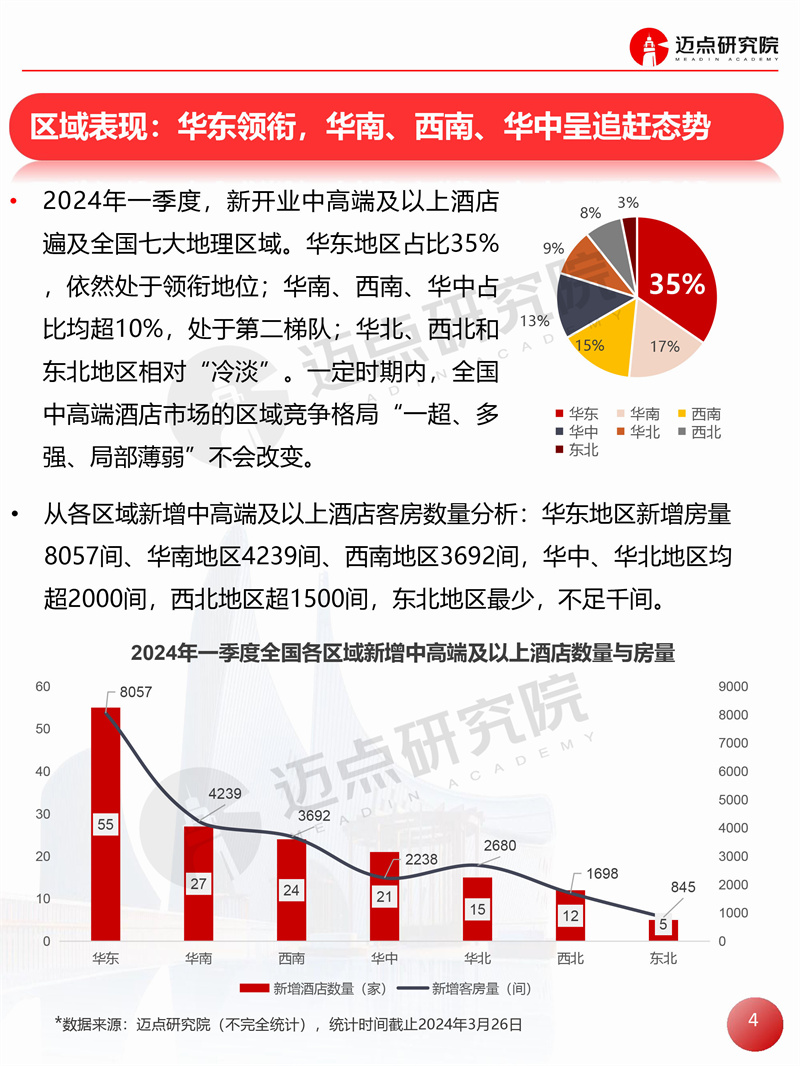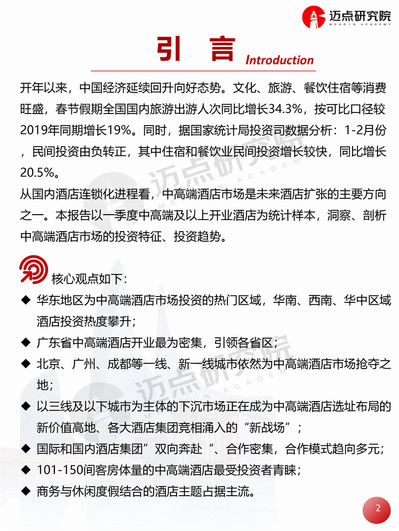2024年一季度全国中高端及以上酒店开业统计报告 迈点研究院 · 邢晶晶 · 2024-03-29 08:51:01 分享到 打开微信“扫一扫”,打开网页后点击屏幕右上角分享按钮。 据迈点研究院不完全统计,2024年一季度全国新开业中高端及以上酒店159家,新增客房约2.34万间。 开业统计 酒店 0