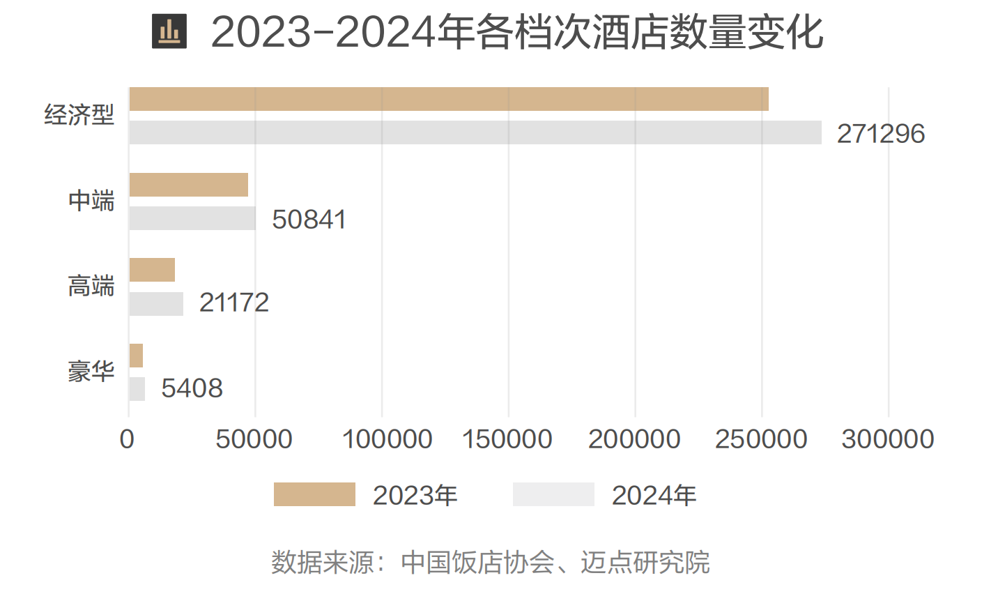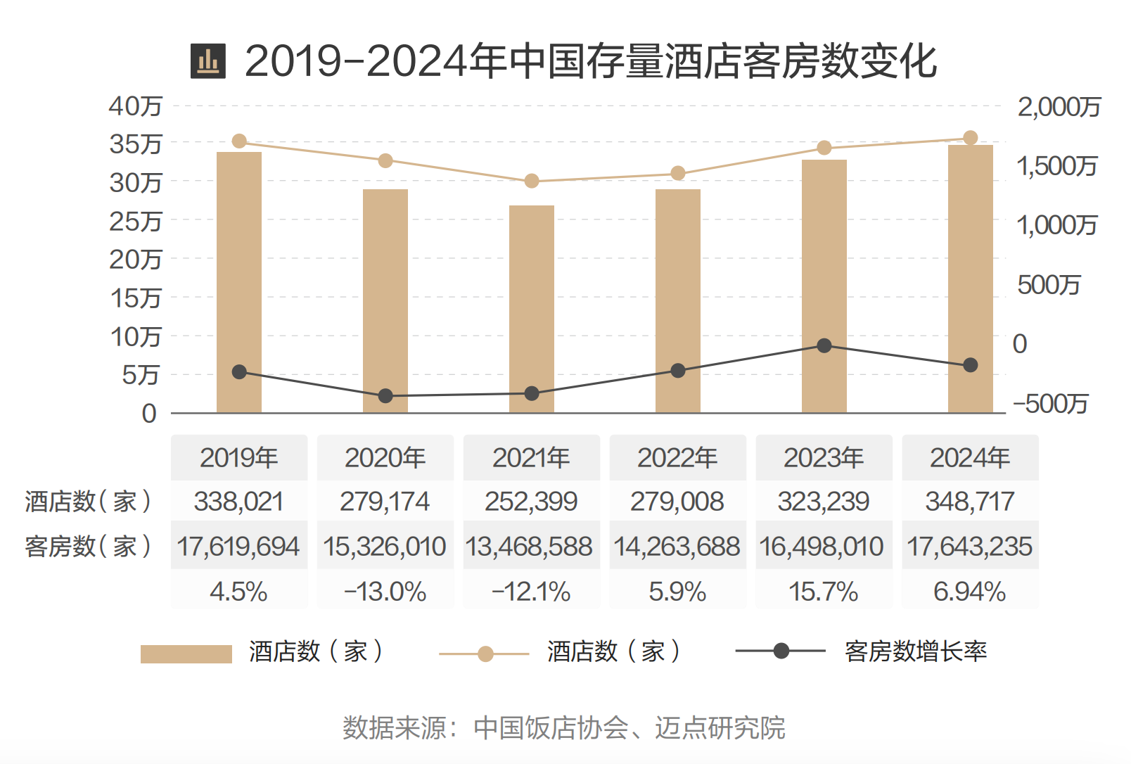 在行业发展层面:市场从“跑量”向多元化、差异化的新周期转型。近几年,酒店业市场规模呈持续增长态势。不过,2024年,酒店存量规模增长势头明显趋缓;新入局者面临更高门槛,粗放增长时代终结。酒店业正加速告别“跑量式”的传统发展路径,正式进入多元化发展、差异化竞争、精细化运营的新周期。酒店业的竞争焦点也从过去的“比规模、拼数量”,转变为如今的“比服务、拼创新、比运营”。