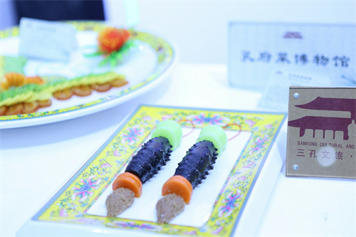 展会现场,中国三大官府菜之首的孔府菜和非遗拓片体验吸引了无数参展游客和媒体的关注与咨询。