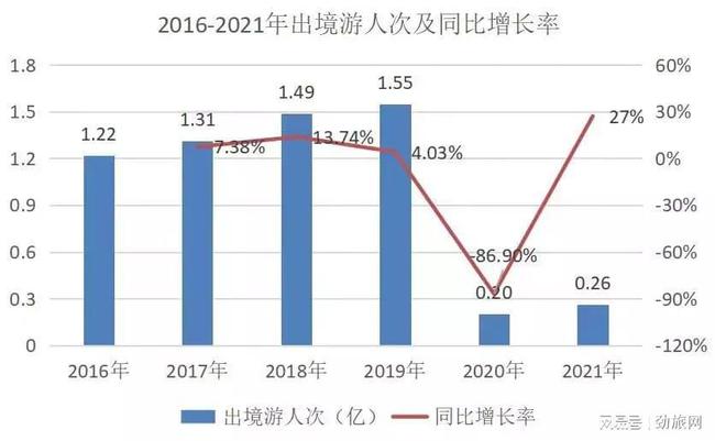 中国旅游研究院日前发布《中国出境旅游发展年度报告2021》显示,2021年预测中国出境旅游人数同比2019年仅恢复到17%,同比2020年仅增长27%。