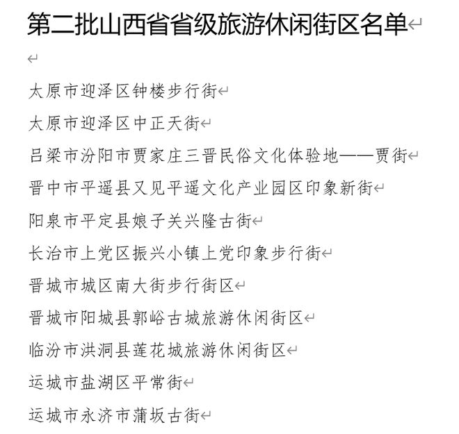 山西省公布第二批省级旅游休闲街区名单