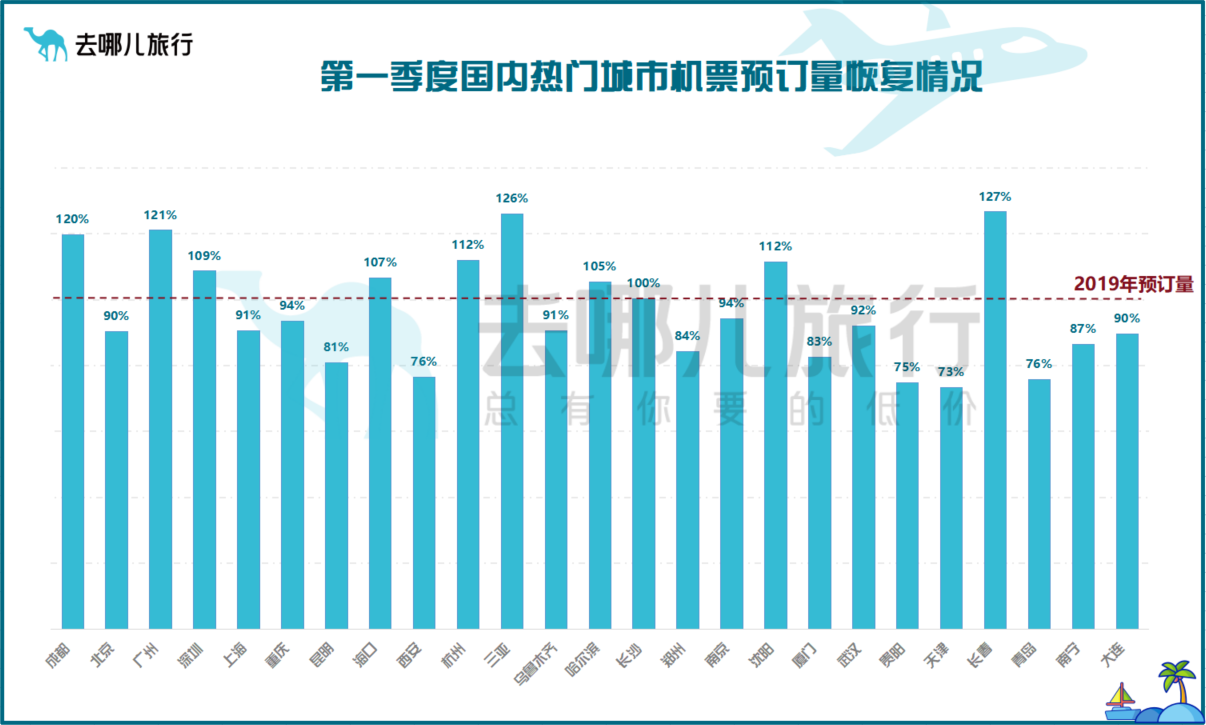 四月来临,春暖花开。回望已经过去的一季度,旅游市场迎来“开门红”,有效促进了各地消费加速复苏。去哪儿数据显示,三亚、广州、成都、杭州、深圳等多个城市进出港机票预订量已超过2019年同期;热门城市酒店入住间夜量同比2019年增长六成。
