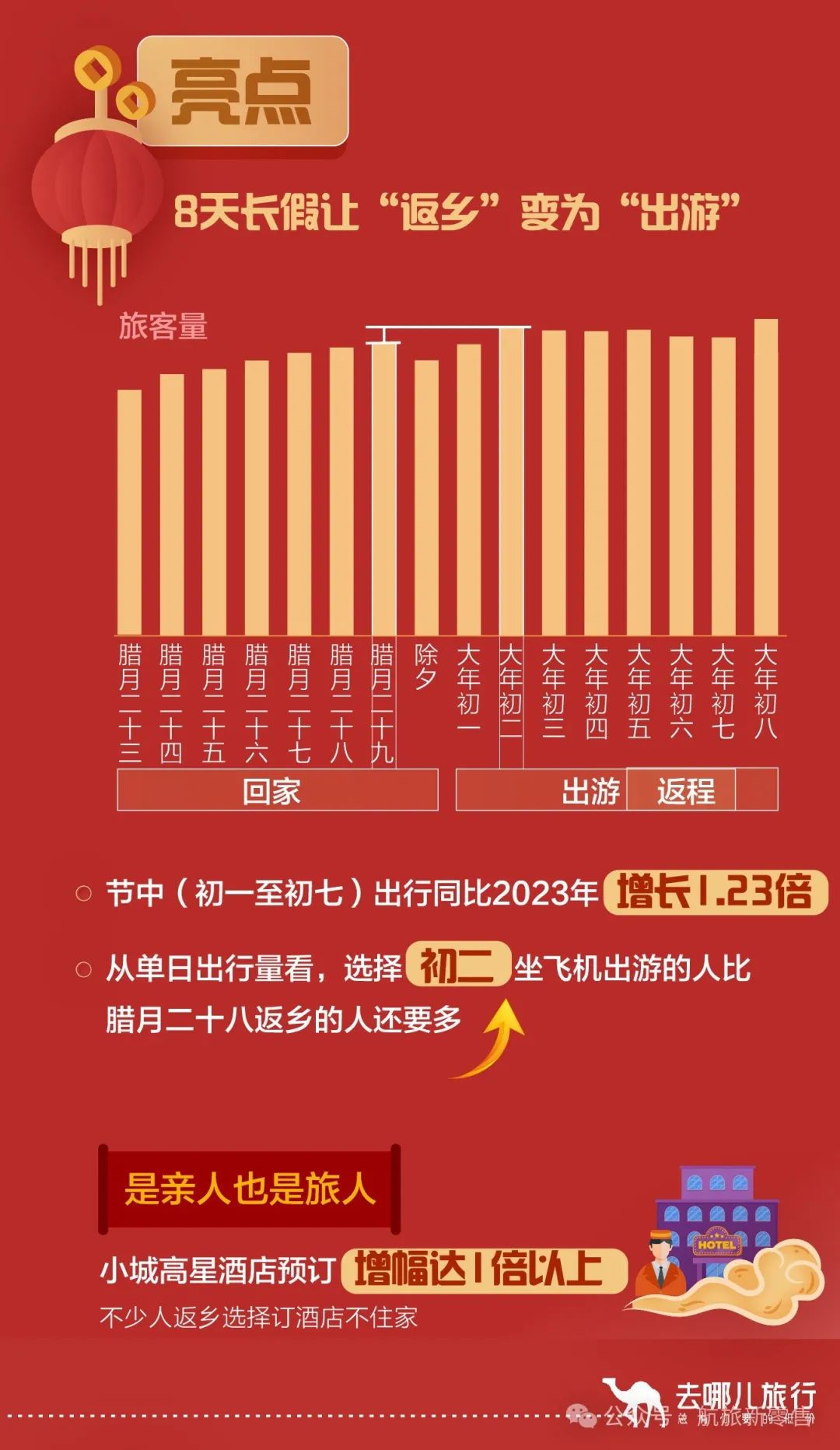 去哪儿春节总结报告:热门城市酒店预订同比2023年增长达1.2倍