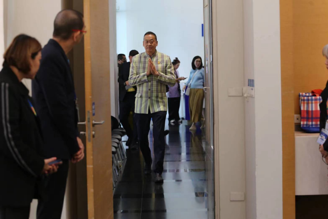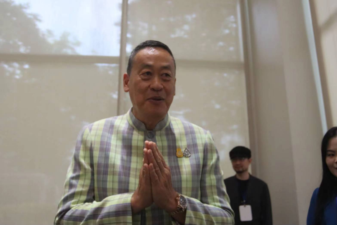 在会议室里,泰国总理赛塔接受了我们的采访。