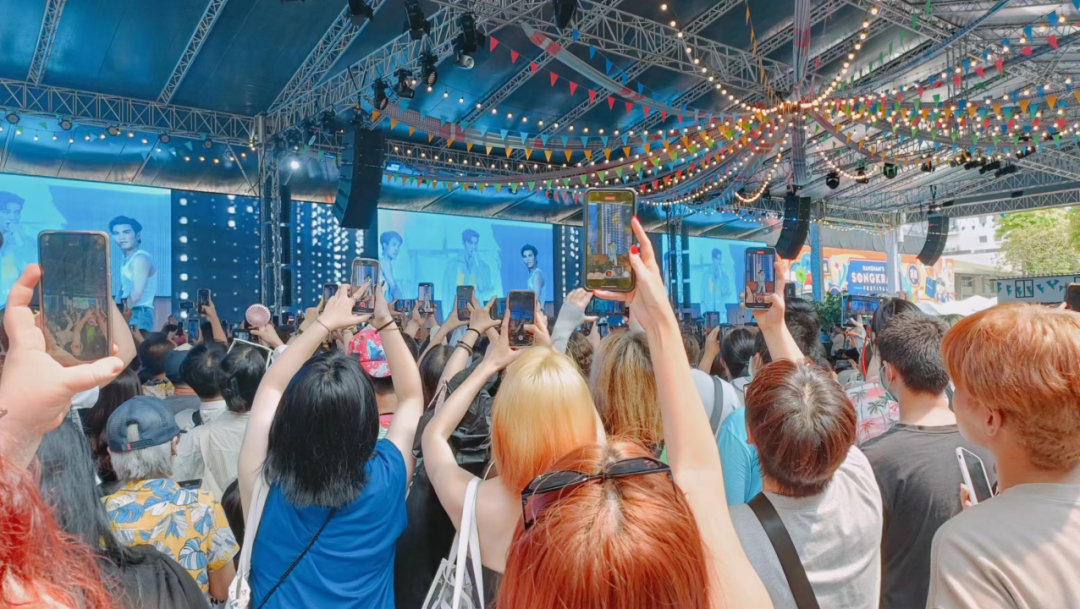 整个宋干节开幕式,立刻变成了一场人声鼎沸的现场音乐会,明星在台上载歌载舞,粉丝们在下面尖叫跟唱,将整个现场的氛围炒到了沸点。